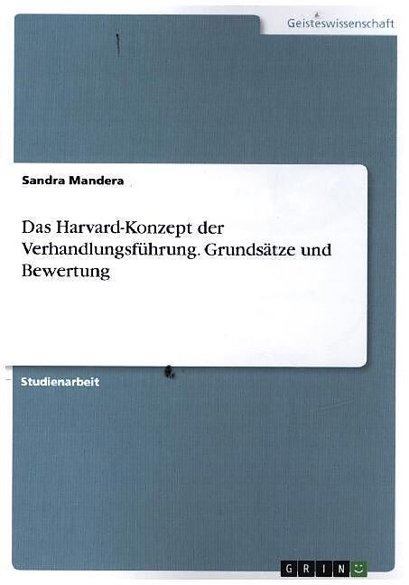 Studienarbeit aus dem Jahr 2019 im Fachbereich Psychologie - Wirtschaftspsychologie, Note: 1,0, Donau-Universität Krems - Universität für Weiterbildung, Sprache: Deutsch, Abstract: Diese Arbeit behandelt das Harvard-Konzept der Verhandlungsführung. Die Rechtsw...