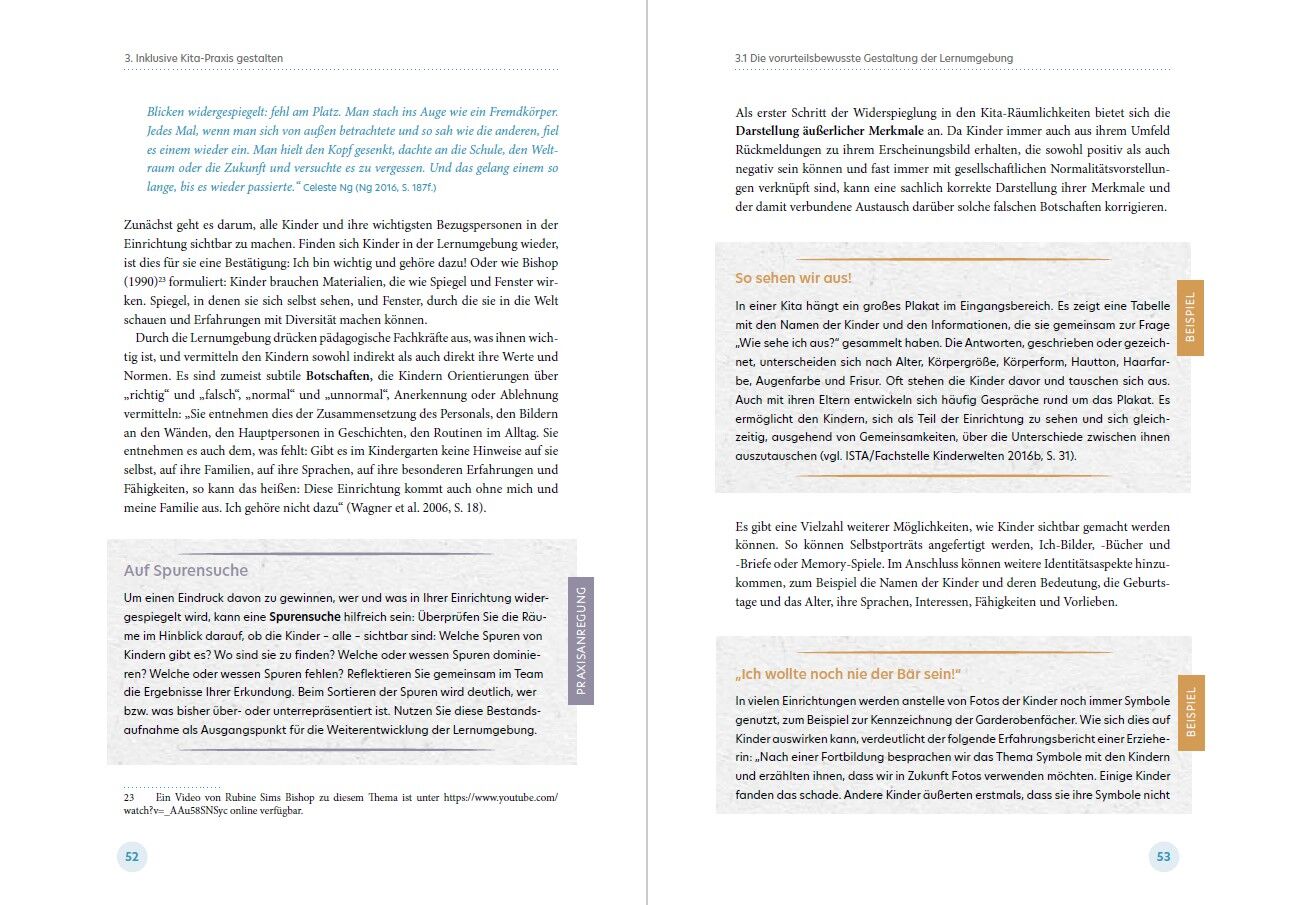 Vorurteile und Diskriminierung sind bereits in der Kita allgegenwärtig und die Identitäten und Lebensbedingungen von Kindern vielfältig. Um diese zu berücksichtigen und diskriminierende Mechanismen abzubauen, bedarf es einer Kita-Praxis, die Ungleichverhältni...