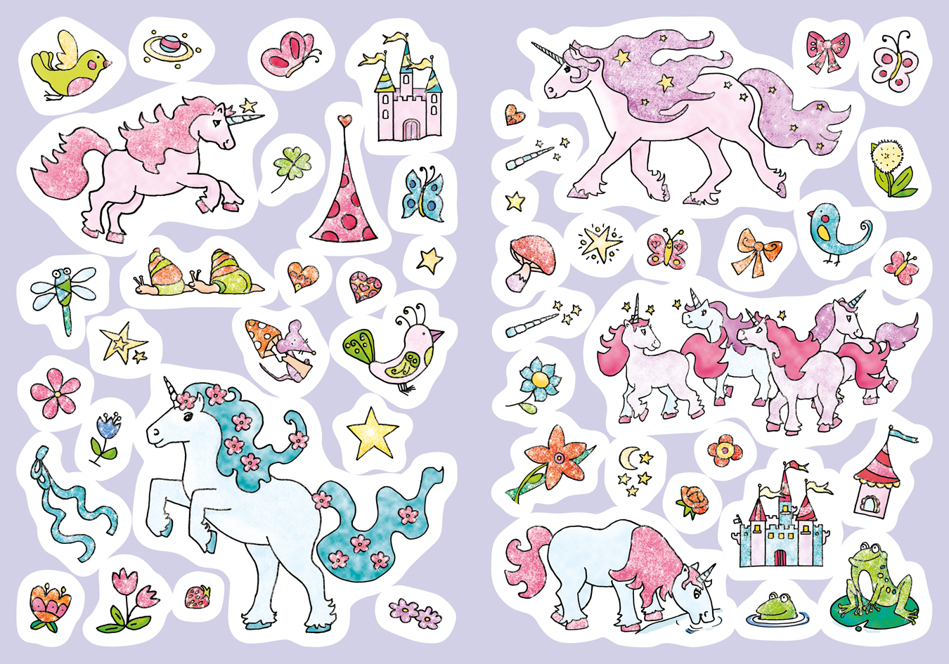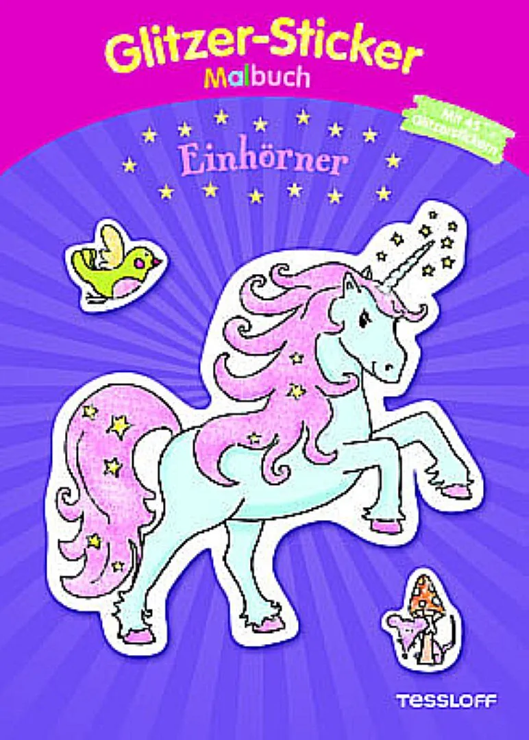 Glitzer-Sticker-Malbuch Einhörner Einhörner stehen als Symbol für das Gute. Und sie sollen Glück bringen, sagt die Legende. In jedem Fall aber werden kleine Künstler großen Spaß daran haben, die zauberhafte Welt in diesem Malbuch nach Lust und Laune auszumalen...