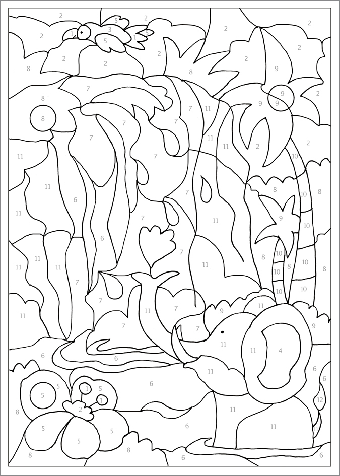 Welches Motiv versteckt sich hinter dem Formen-Wirrwarr? Durch Ausmalen der Felder mit der richtigen Farbe finden es die kleinen Ausmalkünstler schnell heraus. Jeder Zahl ist eine Farbe zugeordnet, mit der die Flächen ausgemalt werden können. Wenn alle Felder ...