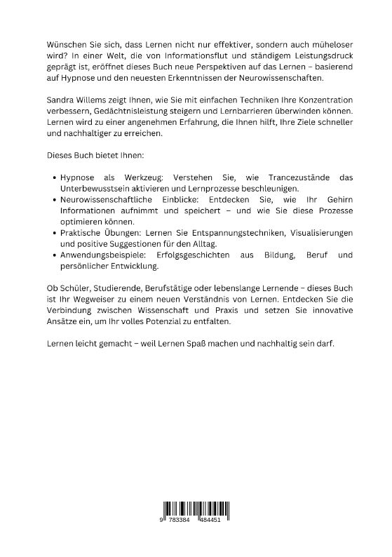Wünschen Sie sich, dass Lernen nicht nur effektiver, sondern auch müheloser wird? In einer Welt, die von Informationsflut und ständigem Leistungsdruck geprägt ist, eröffnet dieses Buch neue Perspektiven auf das Lernen basierend auf Hypnose und den neuesten Erk...