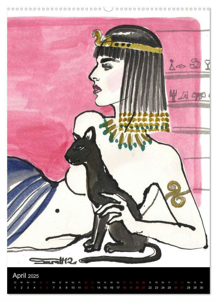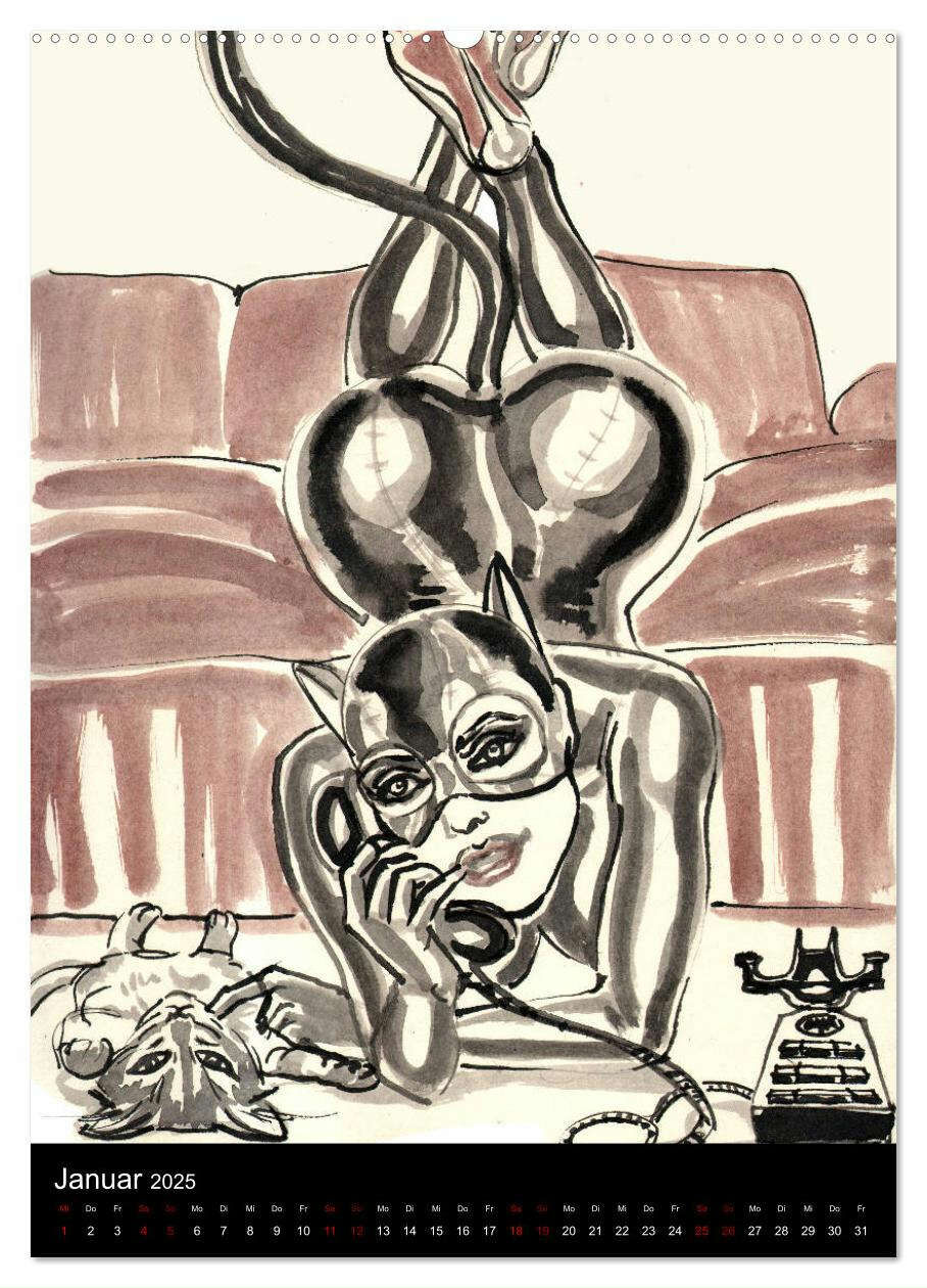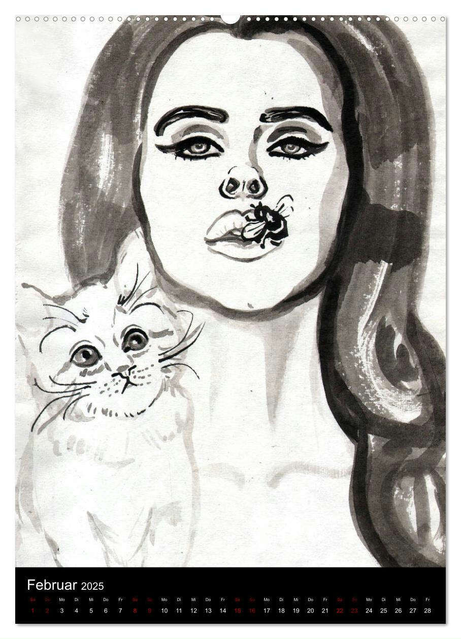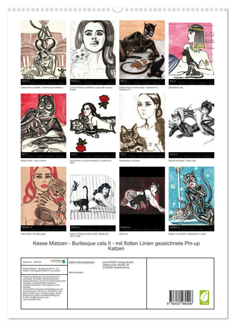 Kesse Mietzen - Burlesque cats II - mit flotten Linien gezeichnete Pin-up Katzen (hochwertiger Premium Wandkalender 2025 DIN A2 hoch), Kunstdruck in Hochglanz