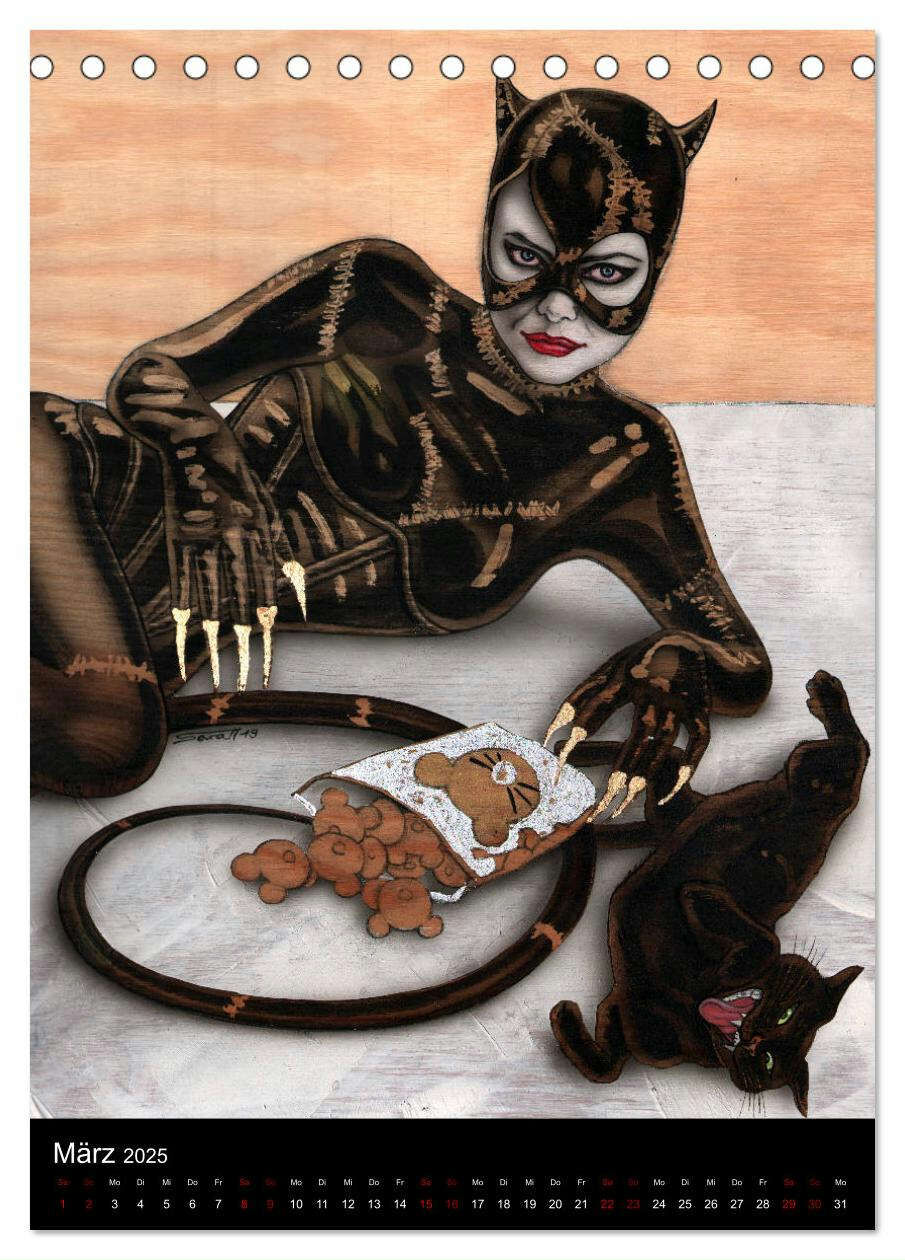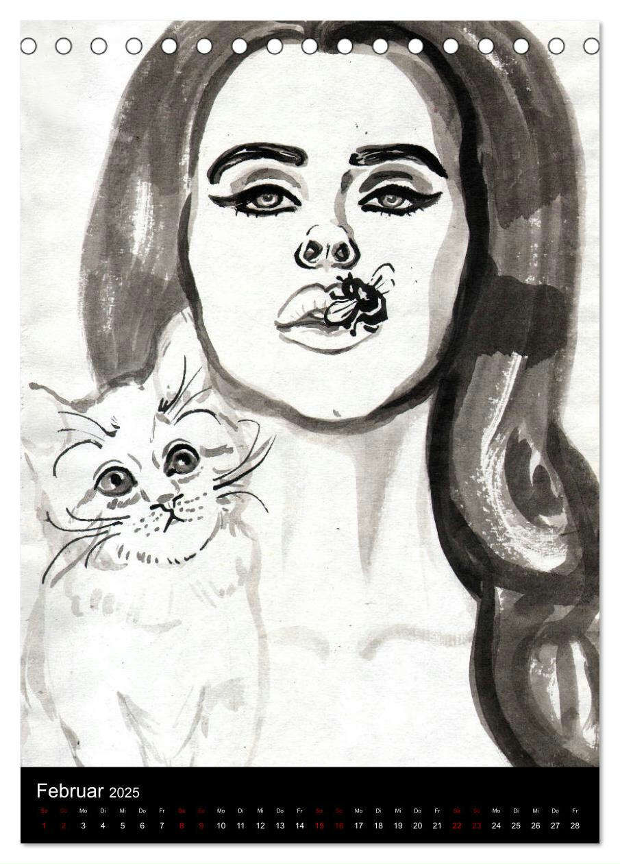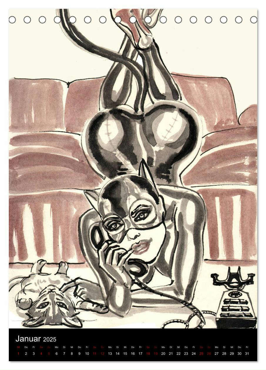 Kesse Mietzen - Burlesque cats II - mit flotten Linien gezeichnete Pin-up Katzen (Tischkalender 2025 DIN A5 hoch), CALVENDO Monatskalender