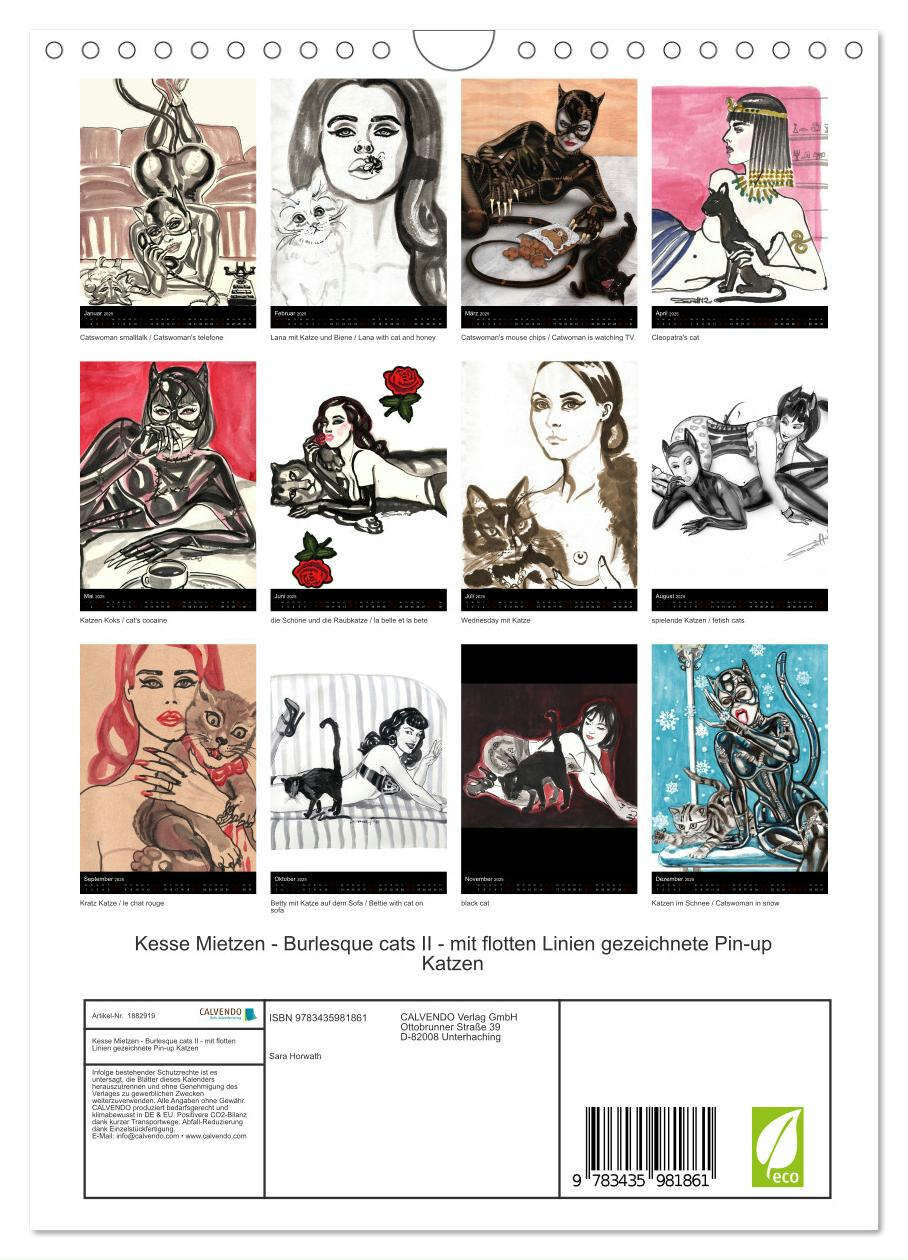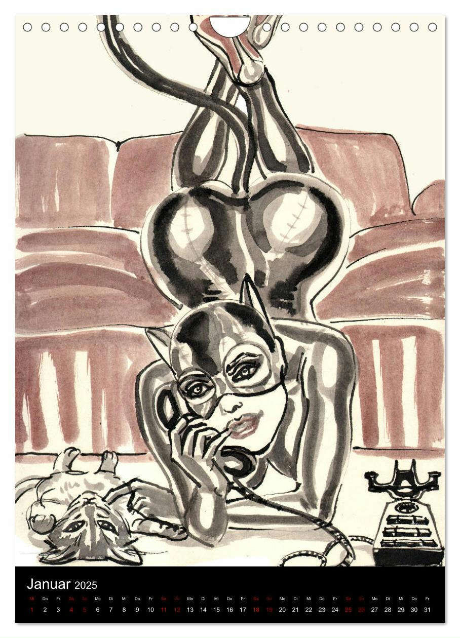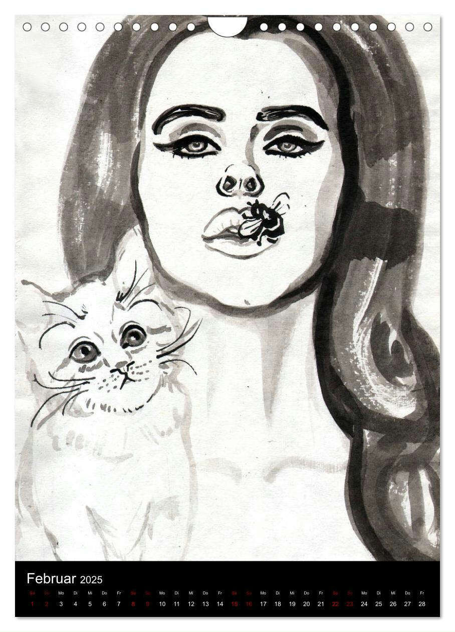 Kesse Mietzen - Burlesque cats II - mit flotten Linien gezeichnete Pin-up Katzen (Wandkalender 2025 DIN A4 hoch), CALVENDO Monatskalender