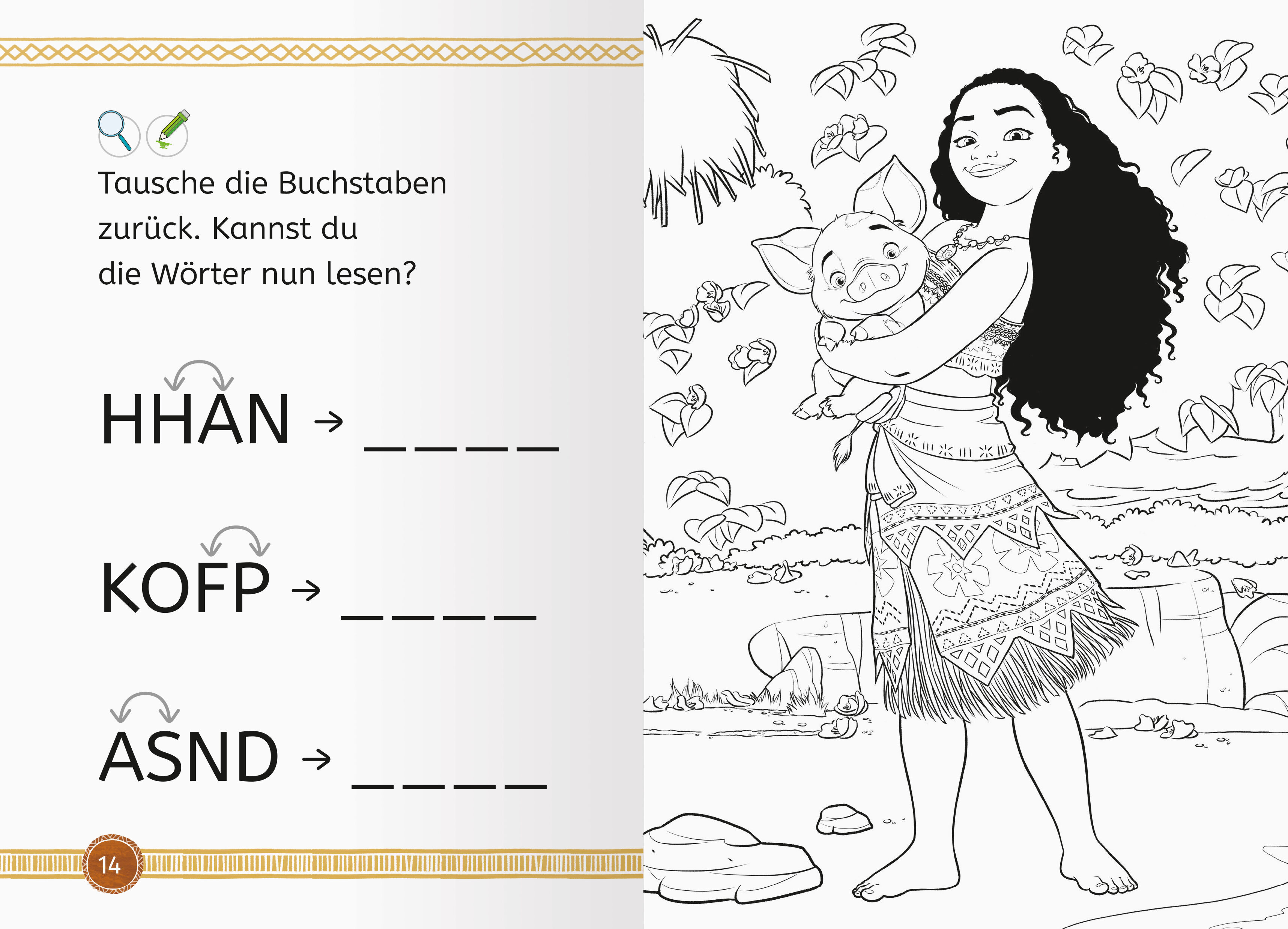 Spannende Abenteuer ab 6 Jahren mit Rätseln und Ausmalbildern! Ravensburger Erstlesebücher erzählen berühmte Disney-Geschichten in einfachen Worten. Vaiana und die Dorfbewohner bereiten ein großes Fest vor. Damit der tollpatschige Hahn Heihei nicht alles verdi...