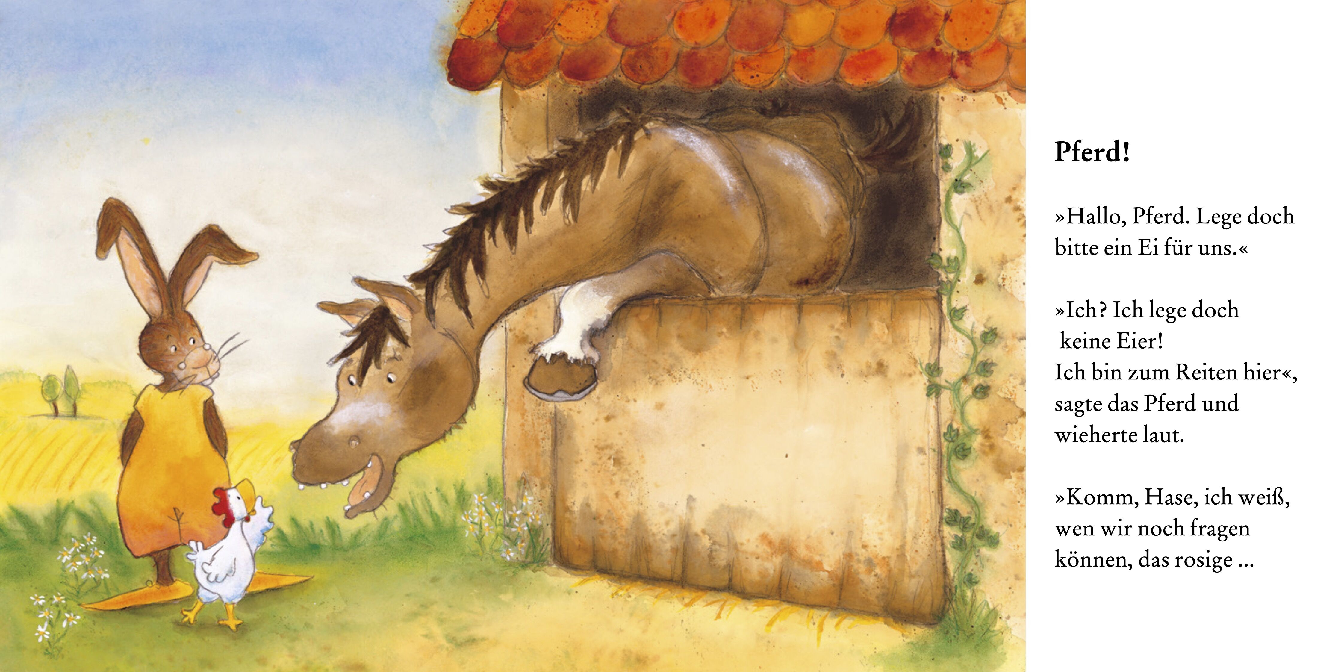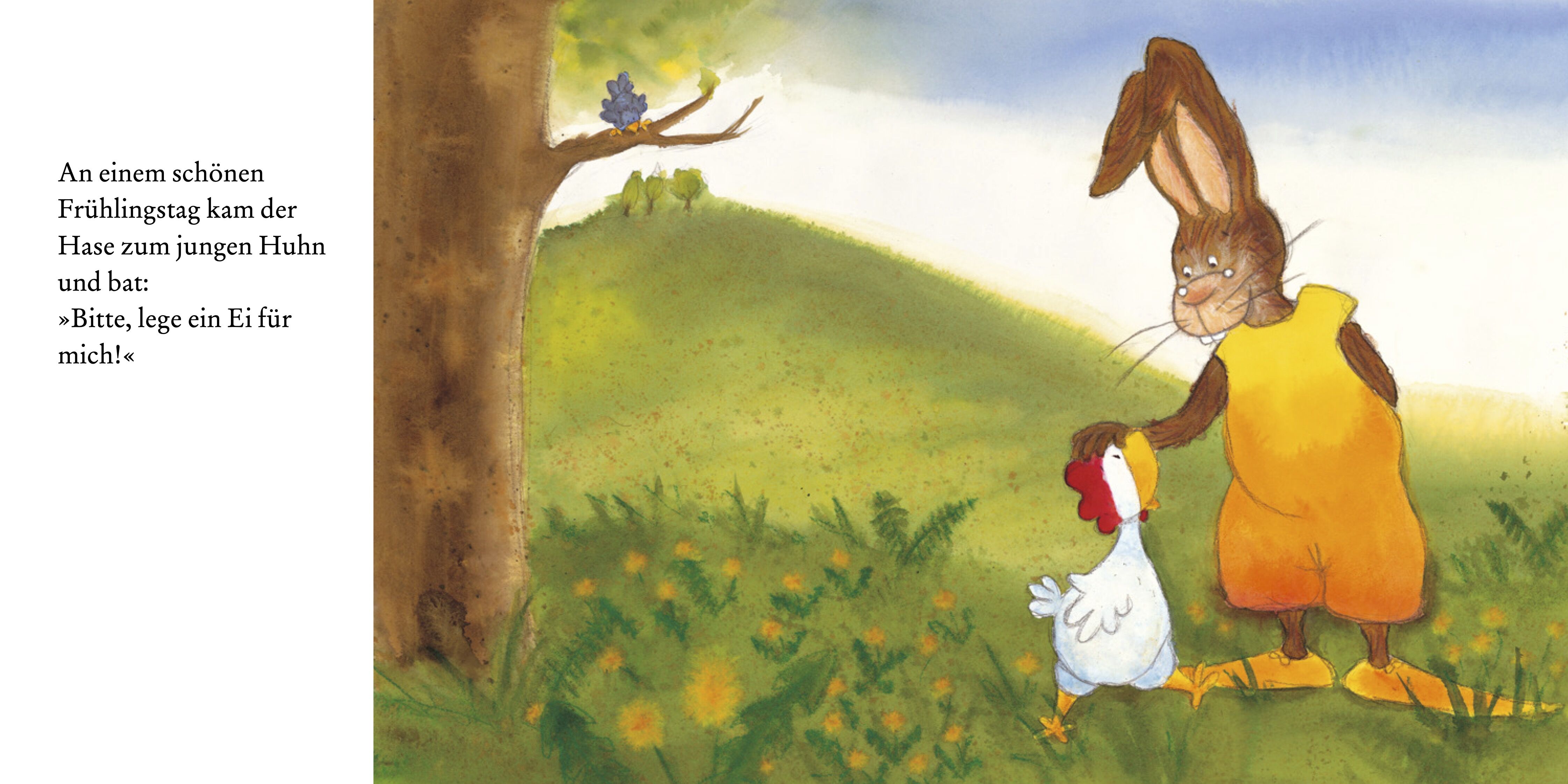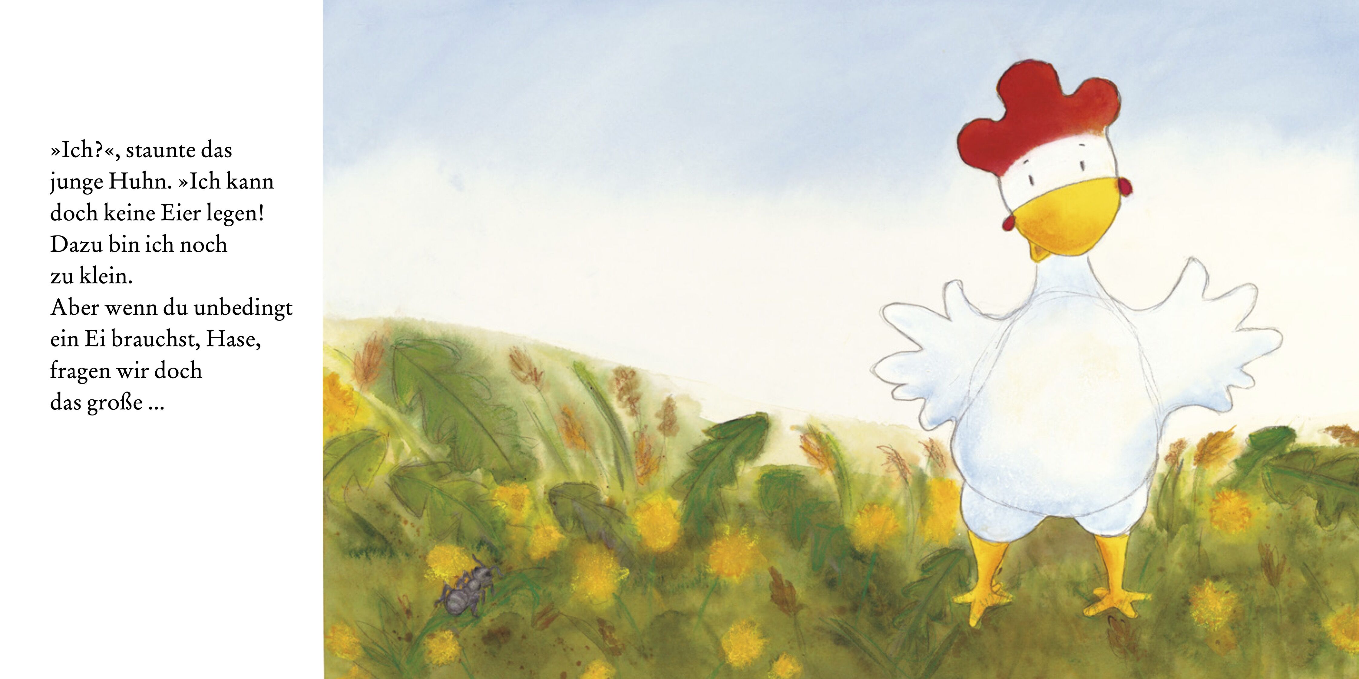 Der Hase will vom kleinen Huhn ein Ei. Aber das kleine Huhn kann noch keine Eier legen. Es bittet ein Tier nach dem anderen um ein Ei. Vergeblich. Die Kuh gibt Milch, das Schaf gibt Wolle - und der Wolf? Wer hätte gedacht, dass ausgerechnet er die beiden auf d...