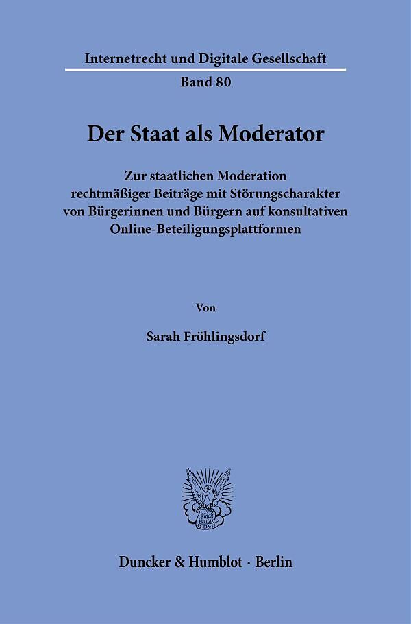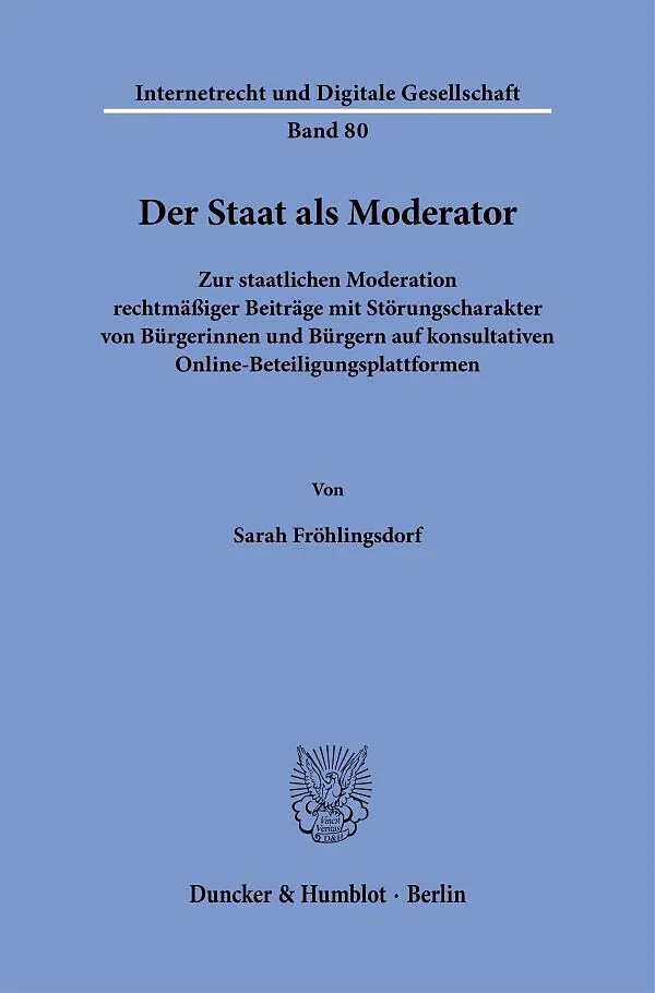 Die Arbeit untersucht, unter welchen verfassungsrechtlichen Voraussetzungen der Staat rechtmäßige, aber störende Beiträge auf digitalen Beteiligungsplattformen moderieren darf. Sie entwickelt einen Orientierungsrahmen, der Content-Moderation auf ein Minimum be...