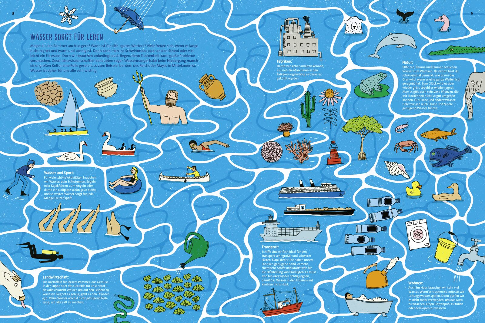 Spannende Fakten und kunterbunte Bilder für kleine und große Sachbuch-Fans! Wasser begegnet Kindern überall auf der Welt als Regen in den Wolken, als Abwasser im Klo, als Salzwasser im Meer, als tobende Wasserfälle, gefrorene Gletscher oder Grundwasser tief i...