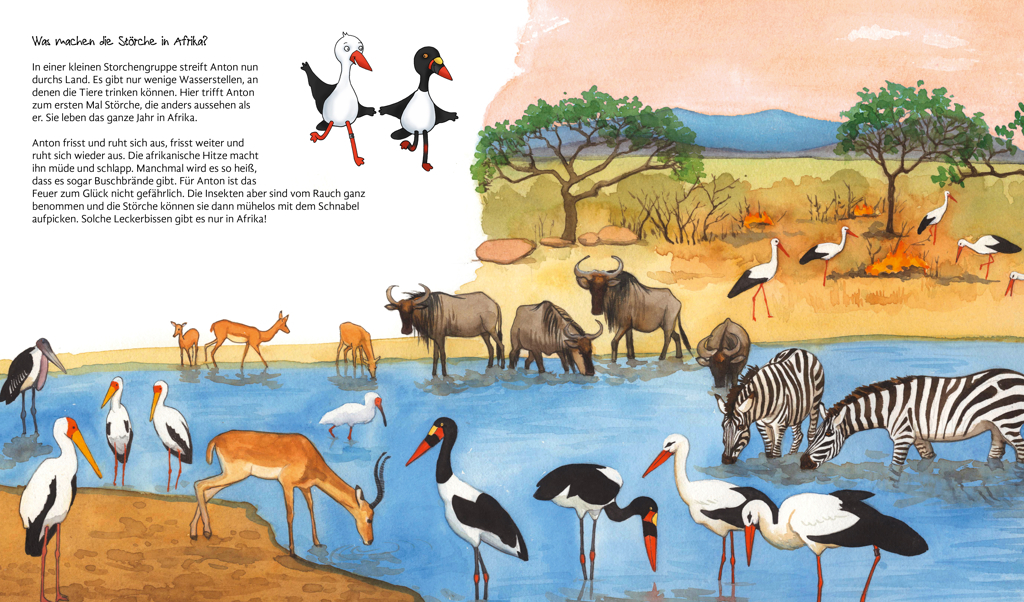 Eine Geschichte mit Sachinformationen über die Reise der Störche für Kinder ab 3 Jahren. Bevor der Winter kommt, reisen die Störche in den warmen Süden. Wie finden sie den Weg nach Afrika und machen sie unterwegs auch Pausen? Begleite den Jungstorch Anton auf ...