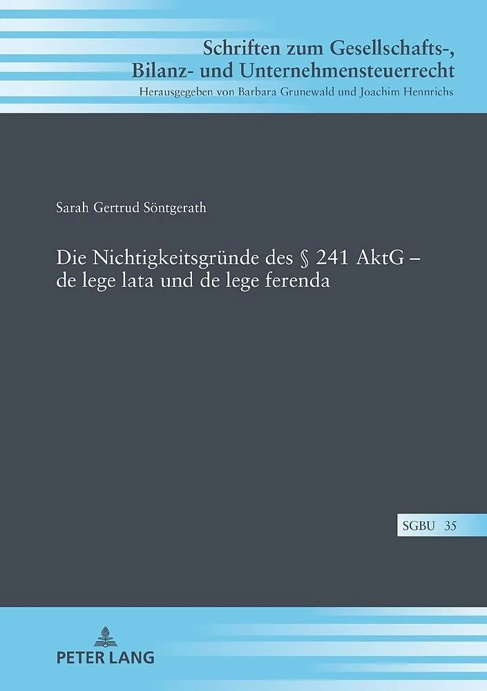 Die Arbeit zeigt auf, ob und wie die Nichtigkeitsgründe des 241 AktG reformiert werden sollten. Die wesentlichen Ergebnisse sind, dass es einer Kategorie der Nichtigkeit neben der Anfechtbarkeit weiterhin bedarf, aber die Nichtigkeitstatbestände und die diesb...