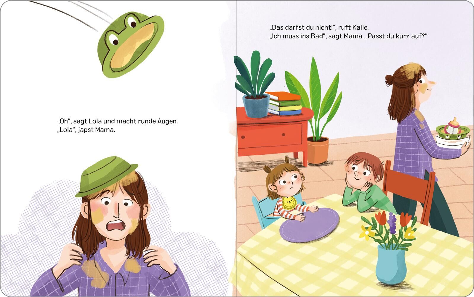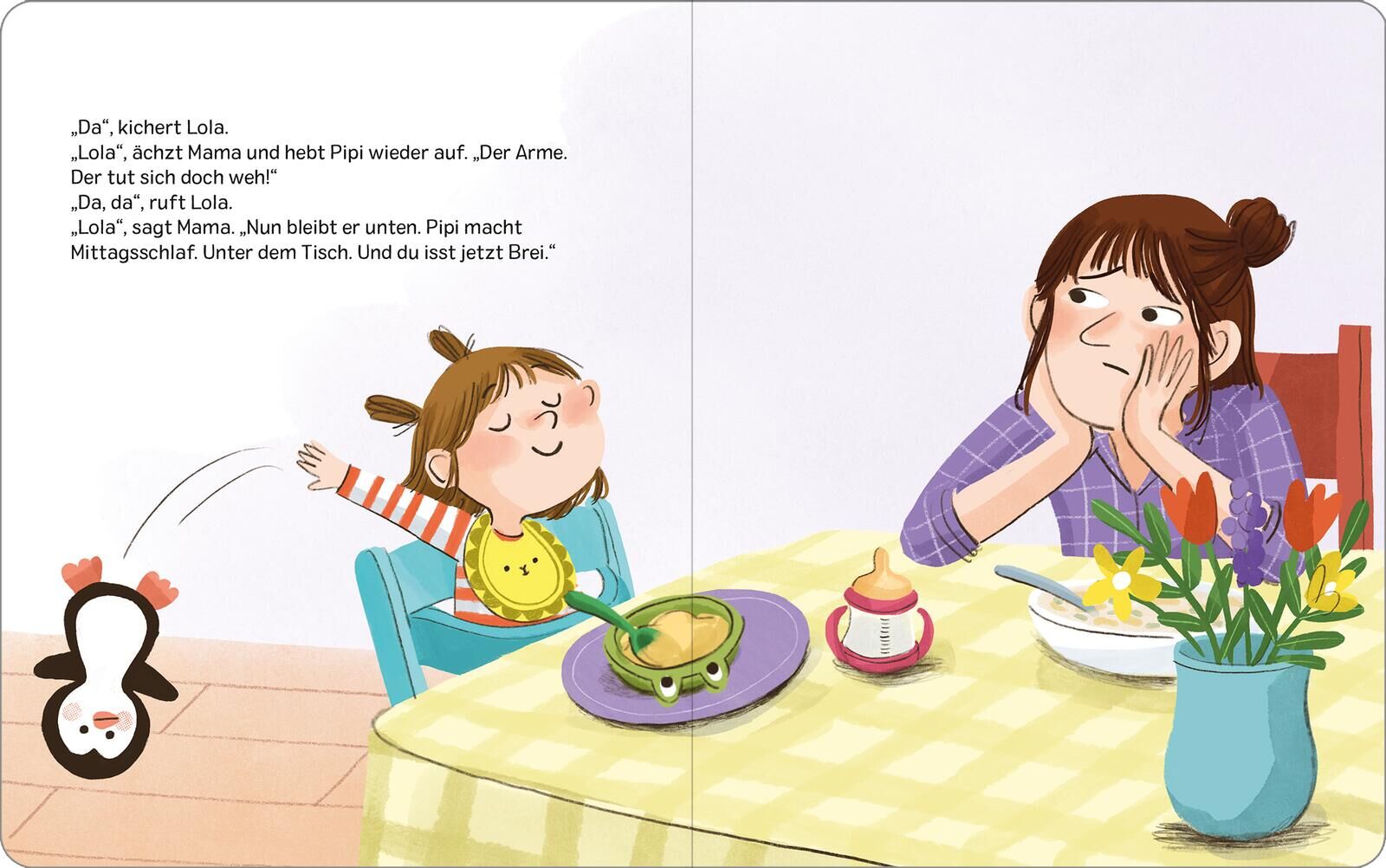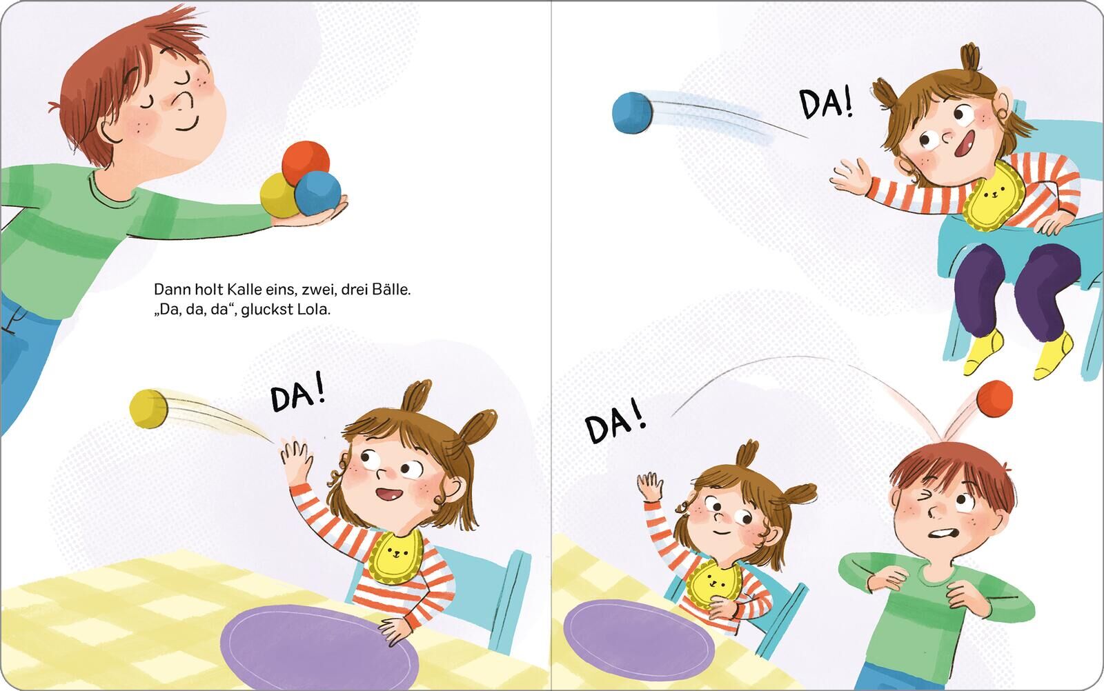 Hier kommen Kalle und Lola! Das ist Kalle. Doch Lola sagt Alle. Lola sagt auch Mama. Und Papa und Pipi, das ist ihr Pinguin. Und da. Da sagt sie am liebsten. Lola ist anderthalb und ihr großer Bruder Kalle schon fast vier. Zusammen halten sie Mama und Papa ga...