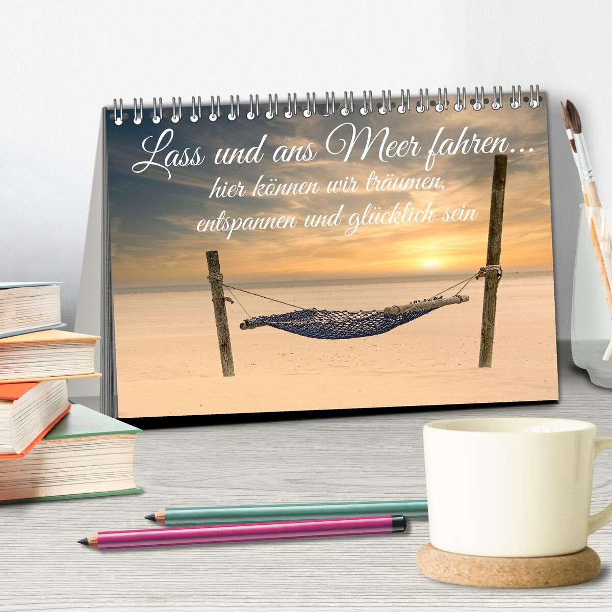 12 traumhafte Momente am Meer begleiten euch Monat für Monat. Mit passenden Sprüchen laden die Motive ein Tage am Meer zu verbringen.