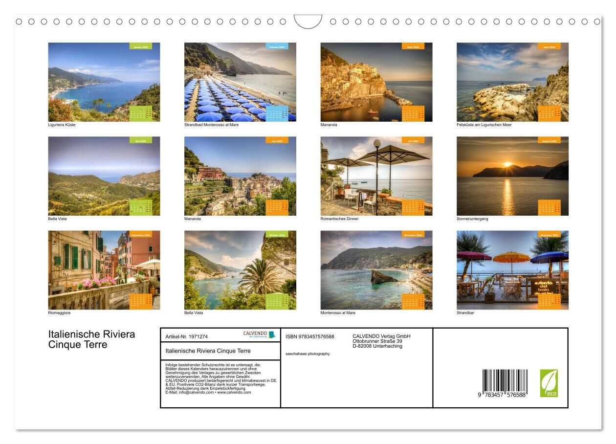 Italienische Riviera Cinque Terre (Wandkalender 2026 DIN A3 quer), CALVENDO Monatskalender
