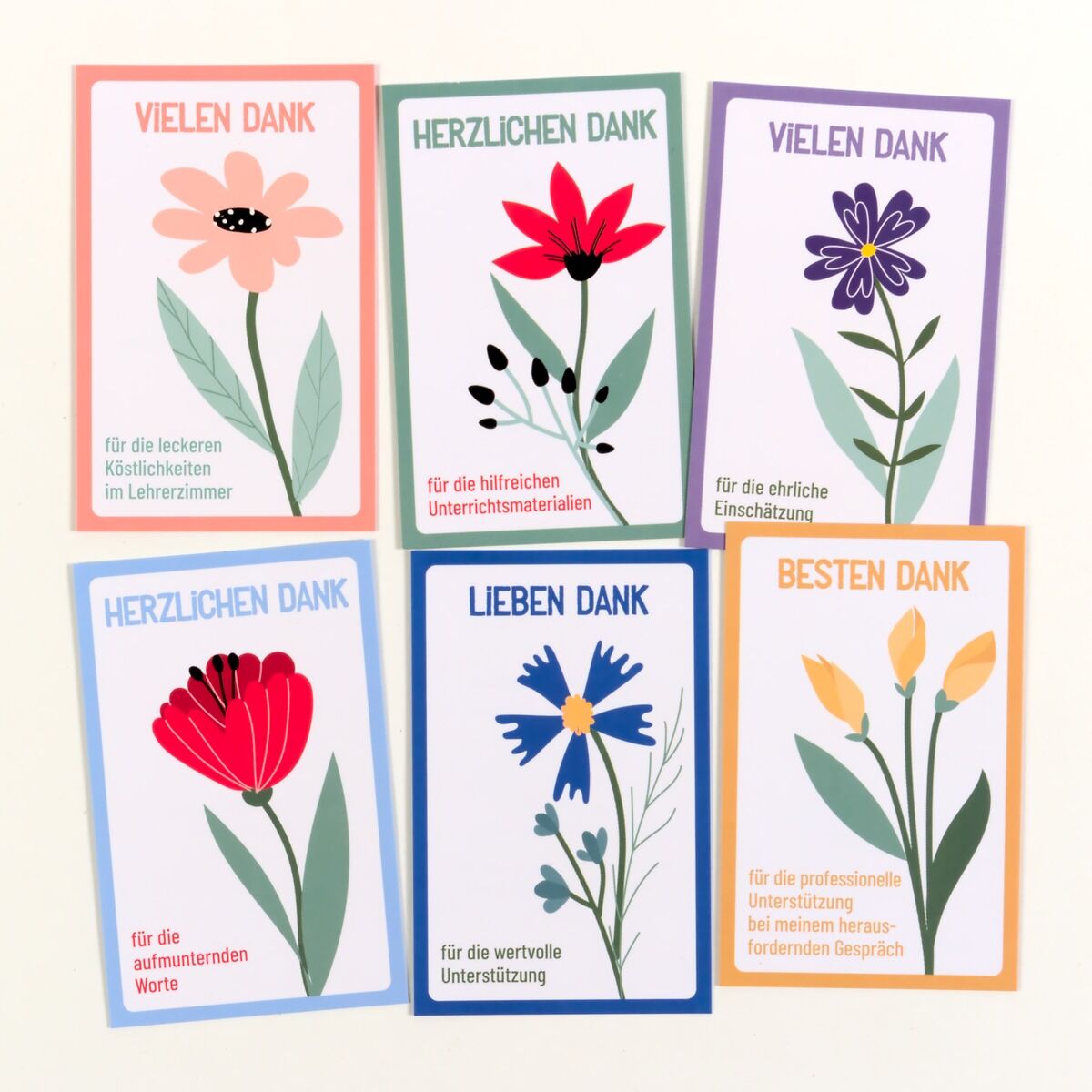 »Herzlichen Dank für die hilfreichen Unterrichtsmaterialien«, »Vielen Dank für die wertvolle Unterstützung« diese illustrierten Wertschätzungskarten bieten 34 ansprechende Möglichkeiten, ein kleines, anerkennendes Dankeschön im Kollegium der Schule zu verschen...