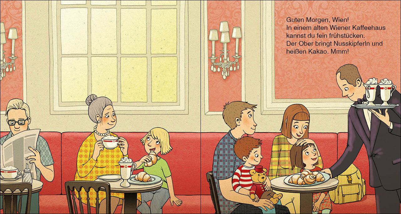 Gute Nacht, Wien Grüß Gott, Wien hier gibt es so viel zu entdecken! Du kannst ein Kaffeehaus besuchen, auf den Steffl steigen und den berühmten Prater besuchen. Und wenn die Sonne untergeht, heißt es: Gute Nacht, Wien, es war ein schöner Tag! Die Lieblingsstad...