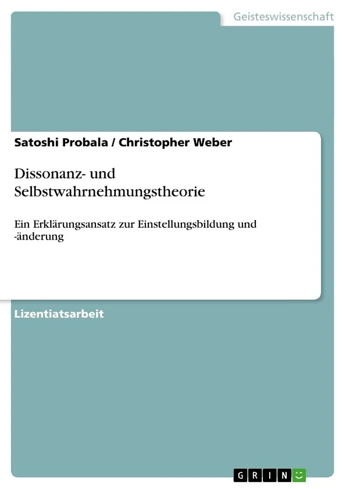 Lizentiatsarbeit aus dem Jahr 2008 im Fachbereich Psychologie - Sozialpsychologie, Note: 6.0, Universität Zürich (Psychologisches Institut), Sprache: Deutsch, Abstract: Der in dieser Arbeit vorgestellte Erklärungsansatz zur Einstellungsbildung und -änderung po...
