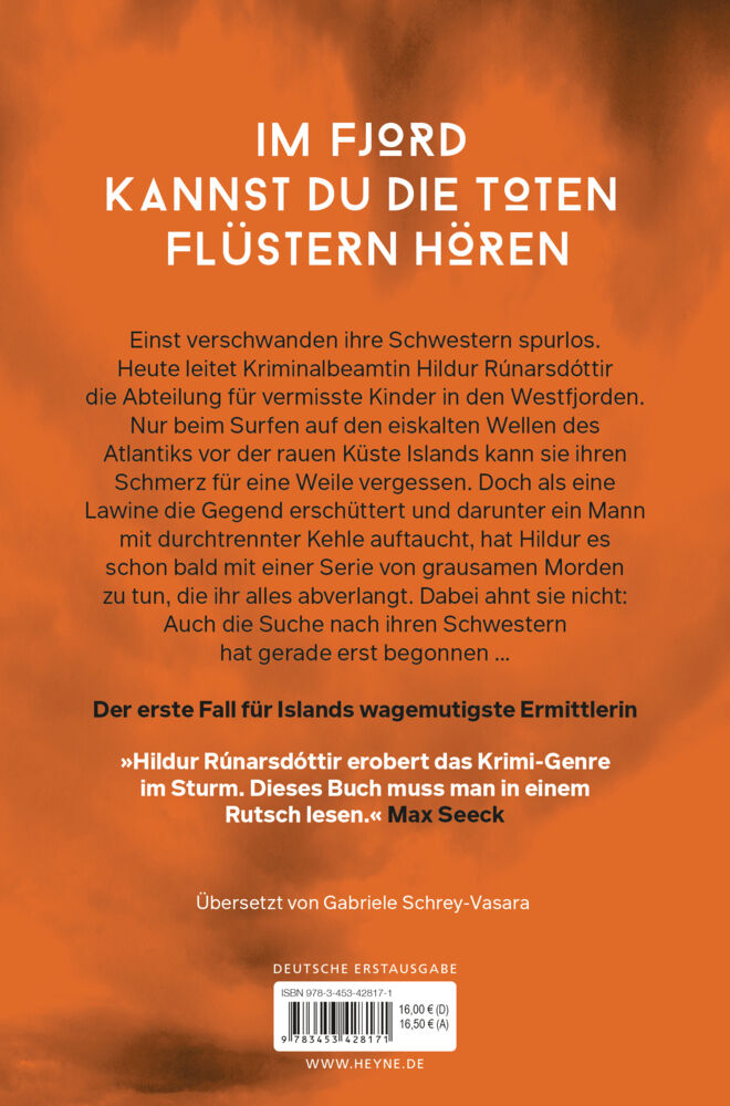 Im Fjord kannst du die Toten flüstern hören Einst verschwanden ihre Schwestern spurlos. Heute leitet Kriminalbeamtin Hildur Rúnarsdóttir die Abteilung für vermisste Kinder in den Westfjorden. Nur beim Surfen auf den eiskalten Wellen des Atlantiks vor der rauen...