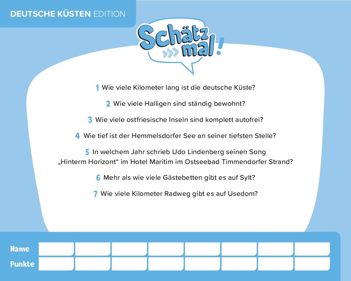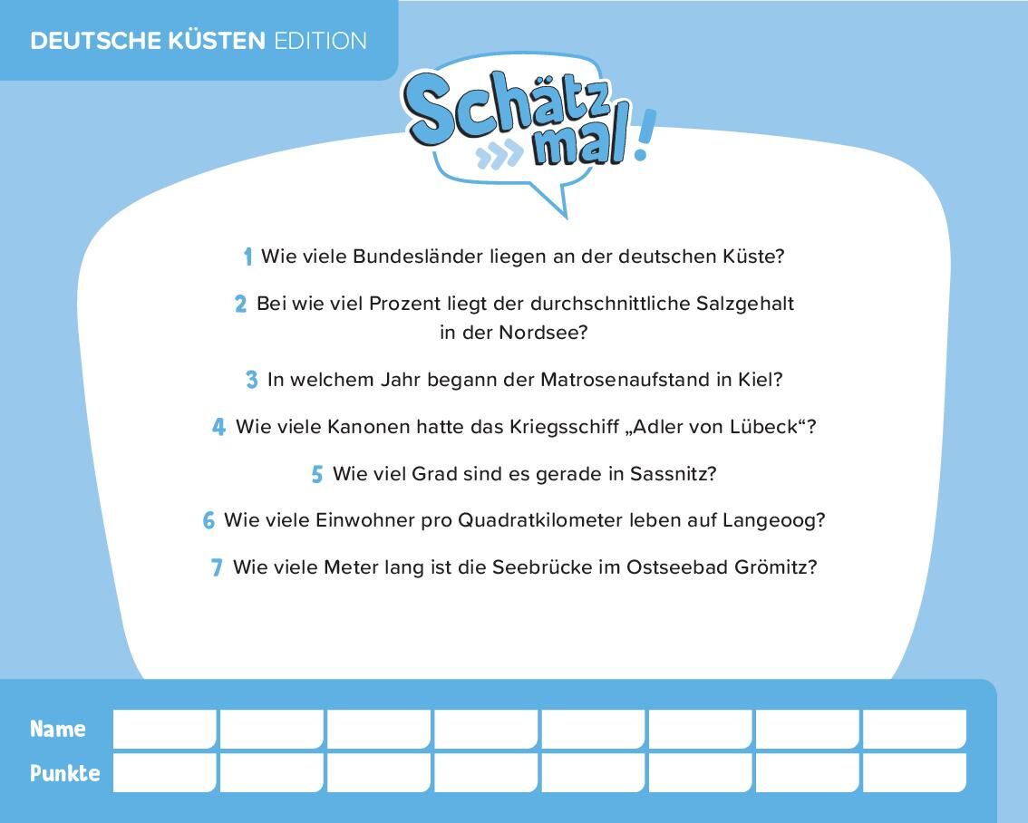 Schätz mal! Das Quiz mit Lach- und Staungarantie • Wie tief ist die Nordsee an ihrer tiefsten Stelle? • Wann eröffnete Norderneys erste Seebadeanstalt? • In welchem Jahr begann der Matrosenaufstand in Kiel? Verrückt, unterhaltsam, mitreißend: E...