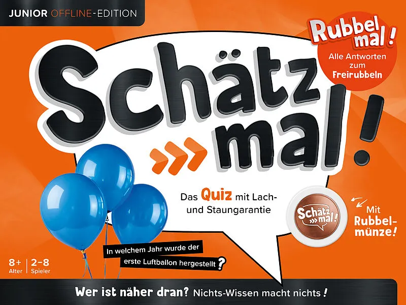 Schätz mal! Junior Offline-Edition Schätz mal! Das Quiz mit Lach- und Staungarantie JETZT NEU: Mit Antworten und Schätz-mal!-Münze zum Freirubbeln • Wie hoch ist der IQ von Homer Simpson? • Was wiegt ein Tischtennisball? • Wie viele Zuckerwürfel...