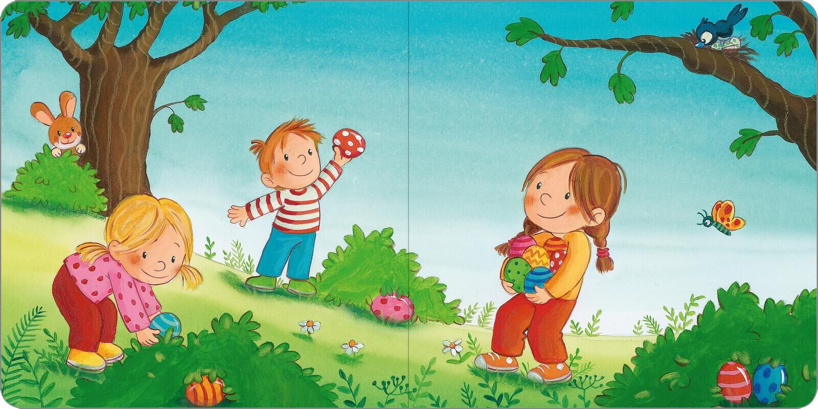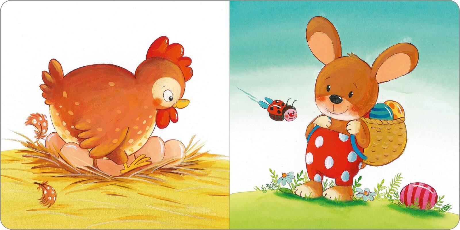 Hurra, der Osterhase ist da! Wenn das Lämmchen auf der Wiese spielt, die Vögel ihr Nest bauen und der Hase die Eier versteckt, dann ist Ostern nicht mehr weit. Wunderbares Geschenk für das Osternest Dieses farbenfroh illustrierte Büchlein zeigt erste farbenfr...