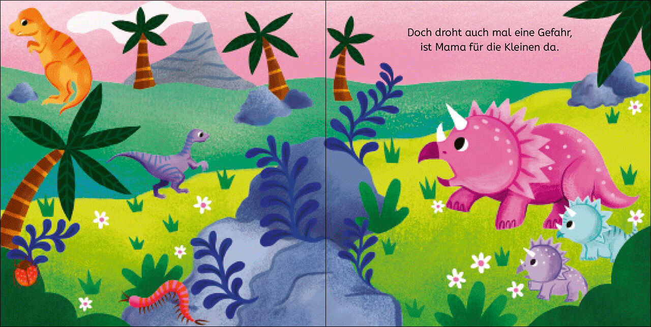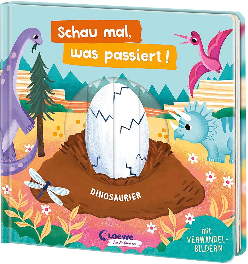 Im Land der Dinosaurier warten jede Menge Abenteuer. Welcher Dino bricht da aus der Eierschale und wer knabbert oben an der Baumspitze? Blätter schnell die Seite um und finde es heraus! In diesem fröhlich-bunten Pappbilderbuch verändern Kinder selbst die Bilde...