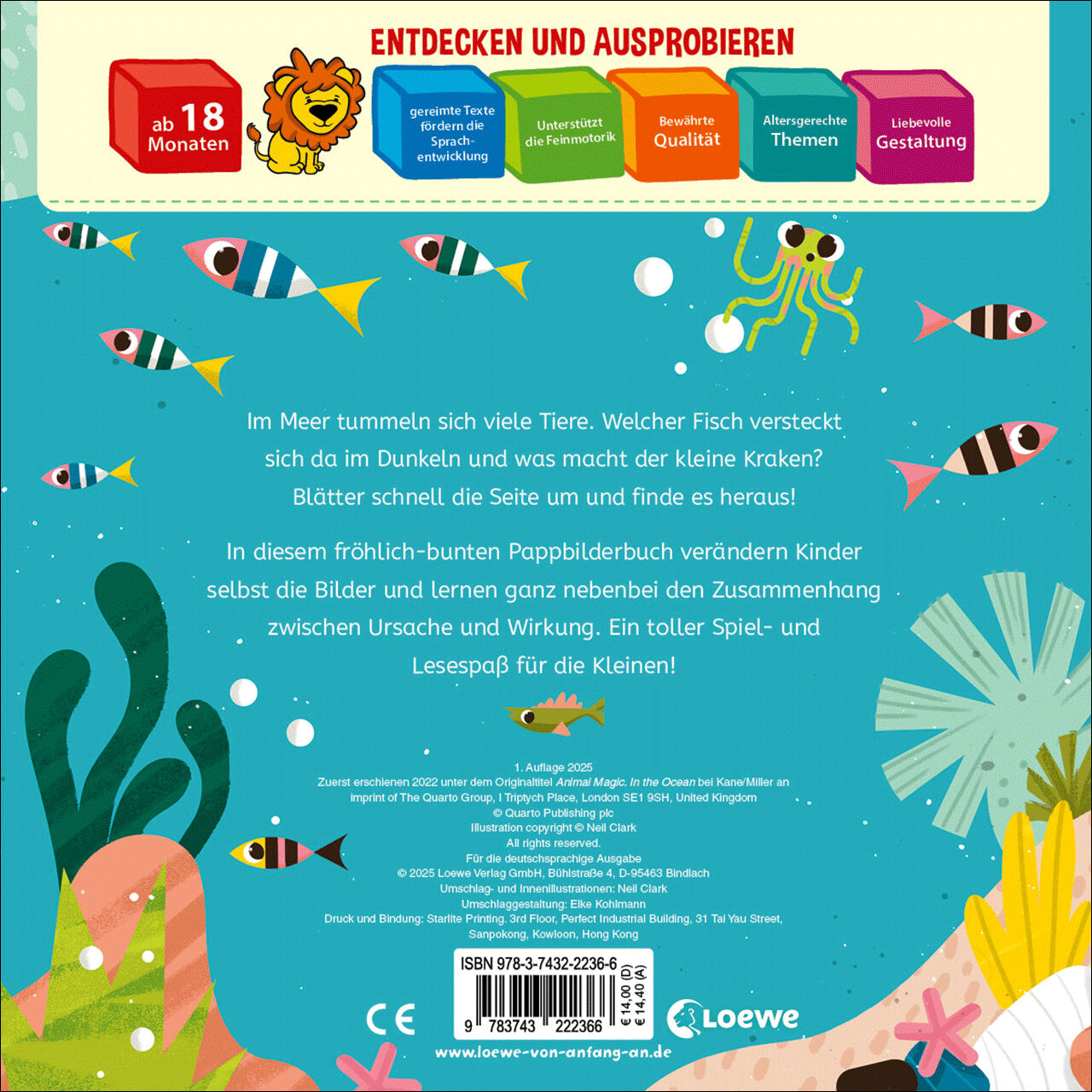 Umklappen und Verwandeln Im Meer tummeln sich viele Tiere. Welcher Fisch versteckt sich da im Dunkeln und was macht der kleine Kraken? Blätter schnell die Seite um und finde es heraus! In diesem fröhlich-bunten Pappbilderbuch verändern Kinder selbst die Bilde...