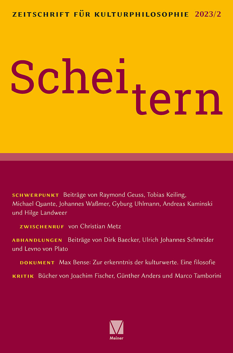Die Möglichkeit des Scheiterns gehört, so scheint es, zur Selbstbestimmung des Menschen. Wer scheitert und woran? Welche Kriterien gibt es dafür? Wann ist etwas, wann ist jemand gescheitert? Was heißt es, über eine Kultur des Scheiterns und über das Scheitern ...