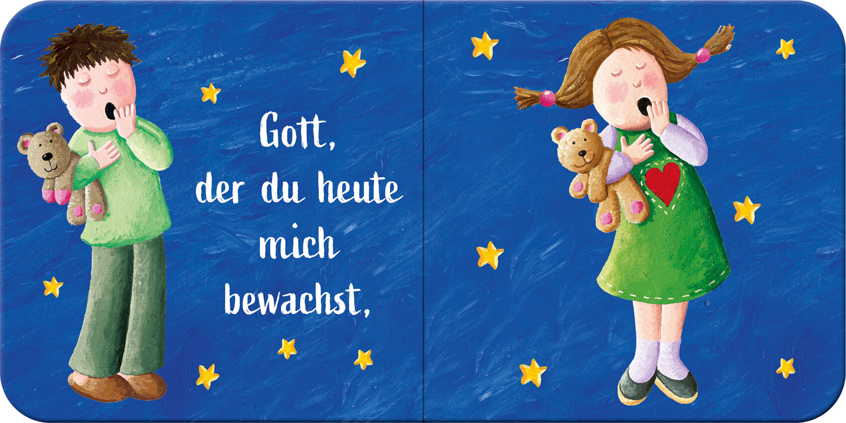 Behütet und geborgen einschlafen Gott, der du heute mich bewachst, beschütze mich auch in dieser Nacht. Du sorgst für alle, Groß und Klein, drum schlaf ich ohne Sorgen ein. Dieses bekannte Gute-Nacht-Gebet begleitet Kinder und Eltern beim Abendritual und lässt...