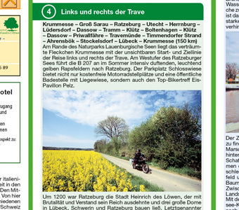 Die Motorradkarte beschreibt 7 Touren durch Schleswig-Holstein (150 330 km). Es bietet als Land zwischen den Meeren flache Strecken mit schöner Landschaft. Gerade zur Rapsblüte lohnen sich die Touren zwischen Eiderstedt im Westen und Fehmarn im Osten. Im Lande...