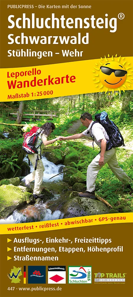Über die Wanderkarte Schluchtensteig im Südschwarzwald: Der 118 km lange Weg führt vom Südrand des Schwarzwaldes weiter westlich über den Schluchsee, St. Blasien und Todtmoos durch das Wehratal nach Wehr. Die als Qualitätsweg Wanderbares Deutschland prämierte ...