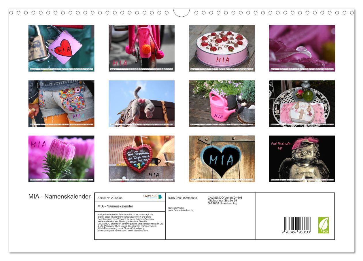 MIA - Namenskalender (Wandkalender 2026 DIN A3 quer), CALVENDO Monatskalender