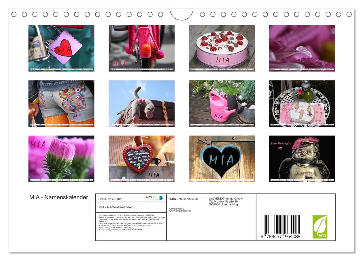 MIA - Namenskalender (Wandkalender 2026 DIN A4 quer), CALVENDO Monatskalender