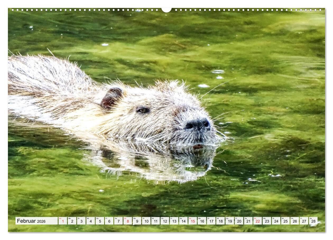 NUTRIA mit Nachwuchs (Wandkalender 2026 DIN A2 quer), CALVENDO Monatskalender