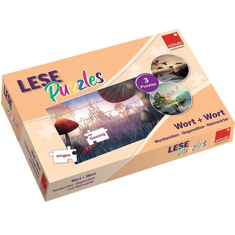 Lesen üben und spielerisch den Wortschatz erweitern: Einfach Wortpaare finden und tolle Puzzlebilder entdecken! Rot: Welche Wörter gehören zusammen? Blau: Finde die Gegensätze. Grün: Welche Wörter reimen sich? Die Wörter auf den Puzzleteilen müssen den Wörter...