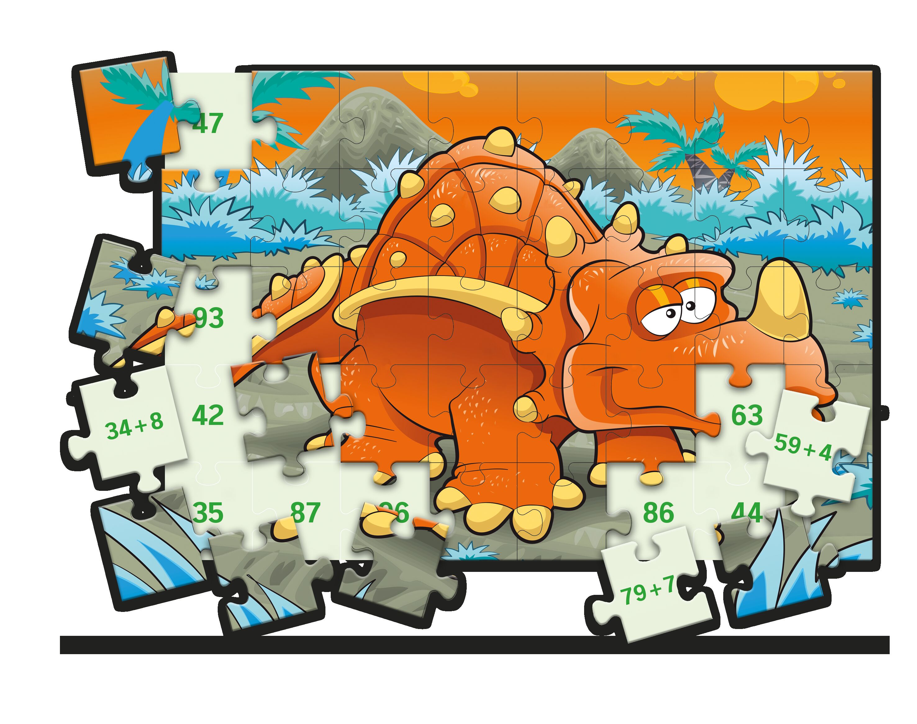 Zum Zusammensetzen der Puzzles werden die Rechenaufgaben auf der Rückseite der Puzzleteile gelöst. Die Kinder legen die Teile auf den richtigen Feldern der Grundtafel ab, Bildseite nach oben. Dadurch ergibt sich eine unmittelbare Selbstkontrolle: Passen die B...