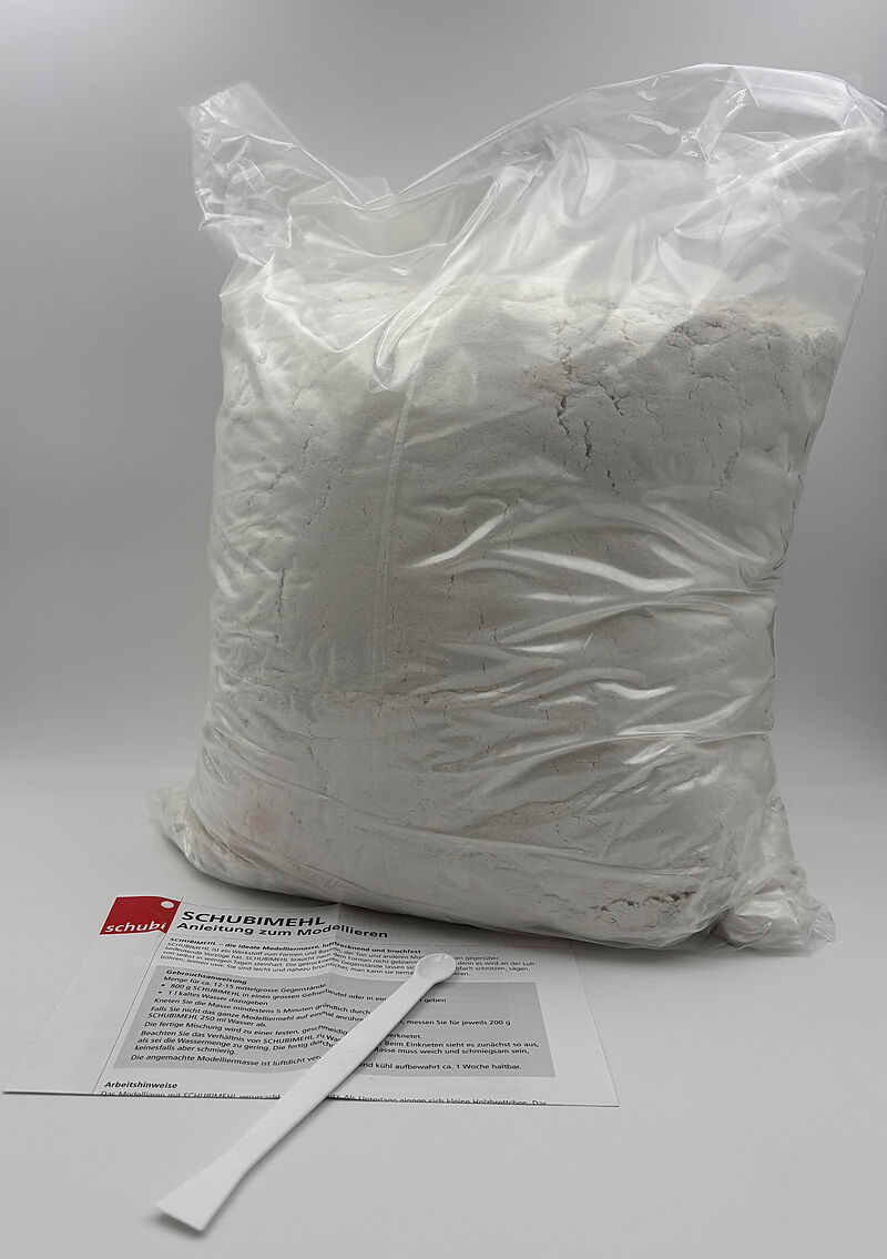 Packung mit 5kg SCHUBI-Mehl, für 6,25 l Wasser. Modellieren macht Freude! SCHUBI-MEHL ist nach wenigen Tagen an der Luft steinhart und nahezu bruchfest. Es lässt sich danach problemlos wie Holz weiter verarbeiten: Sie können nach Herzenslust schnitzen, sägen,...