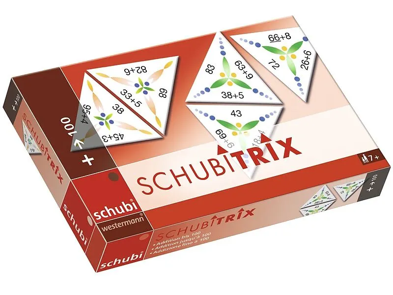 Mit SCHUBITRIX Mathematik lernt jedes Kind spielend rechnen, denn hier wird nach den Regeln des beliebten Dominospiels geübt. Die Dreiecke aus stabilem Karton werden so aneinandergelegt, dass Rechnung und Ergebnis zusammenpassen. Doch aufgepasst: Es müssen im...