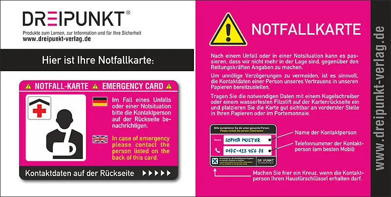 Bei einem Unfall oder einem medizinischen Notfall ist es wichtig, dass eine Kontaktperson für Polizei oder Rettungsdienste erreichbar ist. Diese scheckkartengroße Notfallkarte hat Platz in Ihren Papieren oder in der Brieftasche. Dies sind die Orte, an denen Re...