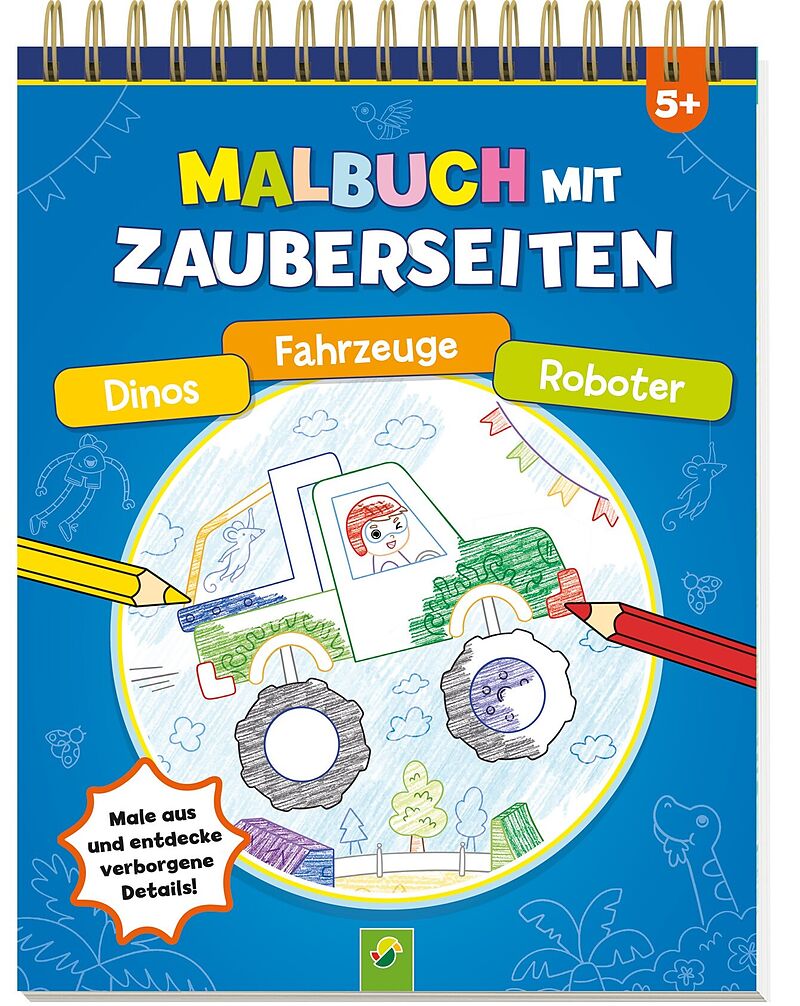 Dinos, Fahrzeuge, Roboter, Zauberseiten Das magische Malbuch für alle Fans von Dinos, Fahrzeugen und Robotern! • 24 magische Ausmalbilder von Dinosauriern, Robotern, Monstertrucks, Feuerwehrautos und vielem mehr • Malbuch mit Zaubereffekt: Beim Ausma...