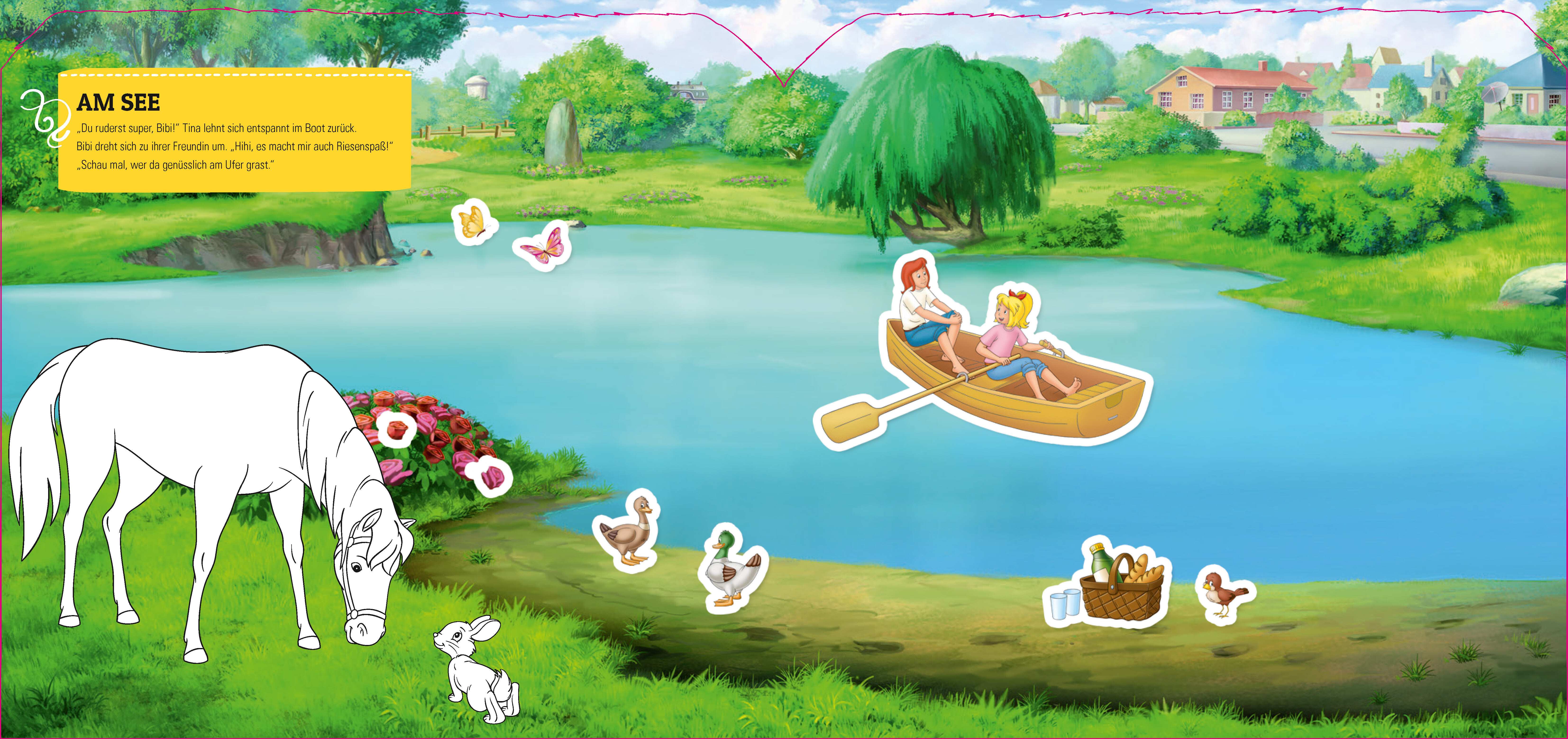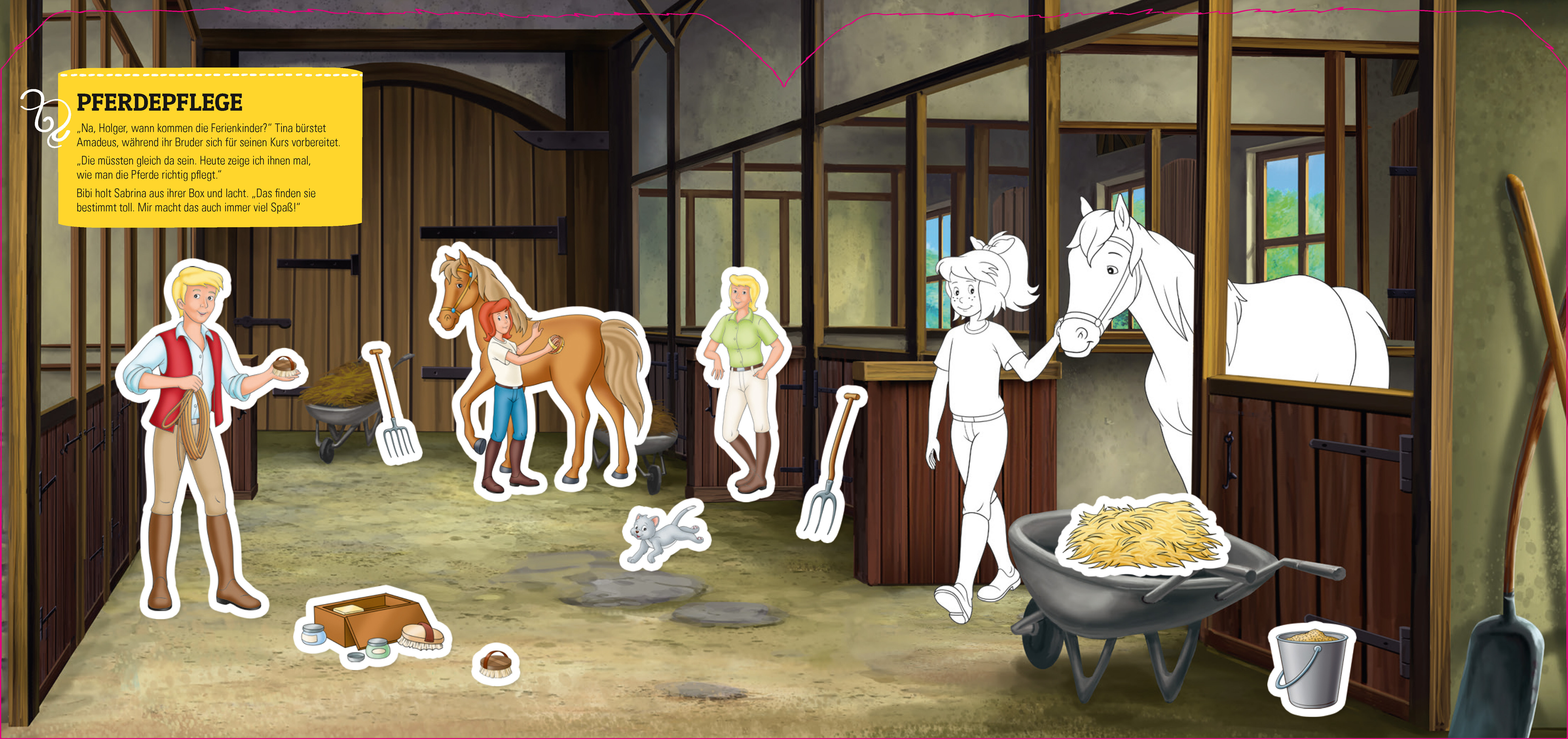 Kunterbunter Sticker- und Malspaß mit Bibi & Tina • 31 tolle Szenen rund um den Martinshof • Jede Menge Ausmalmotive und über 250 Sticker • Besonderes Extra: Cover mit ausgestanzten Guckloch-Fenstern • Für Kinder ab 4 Jahren zur Förder...