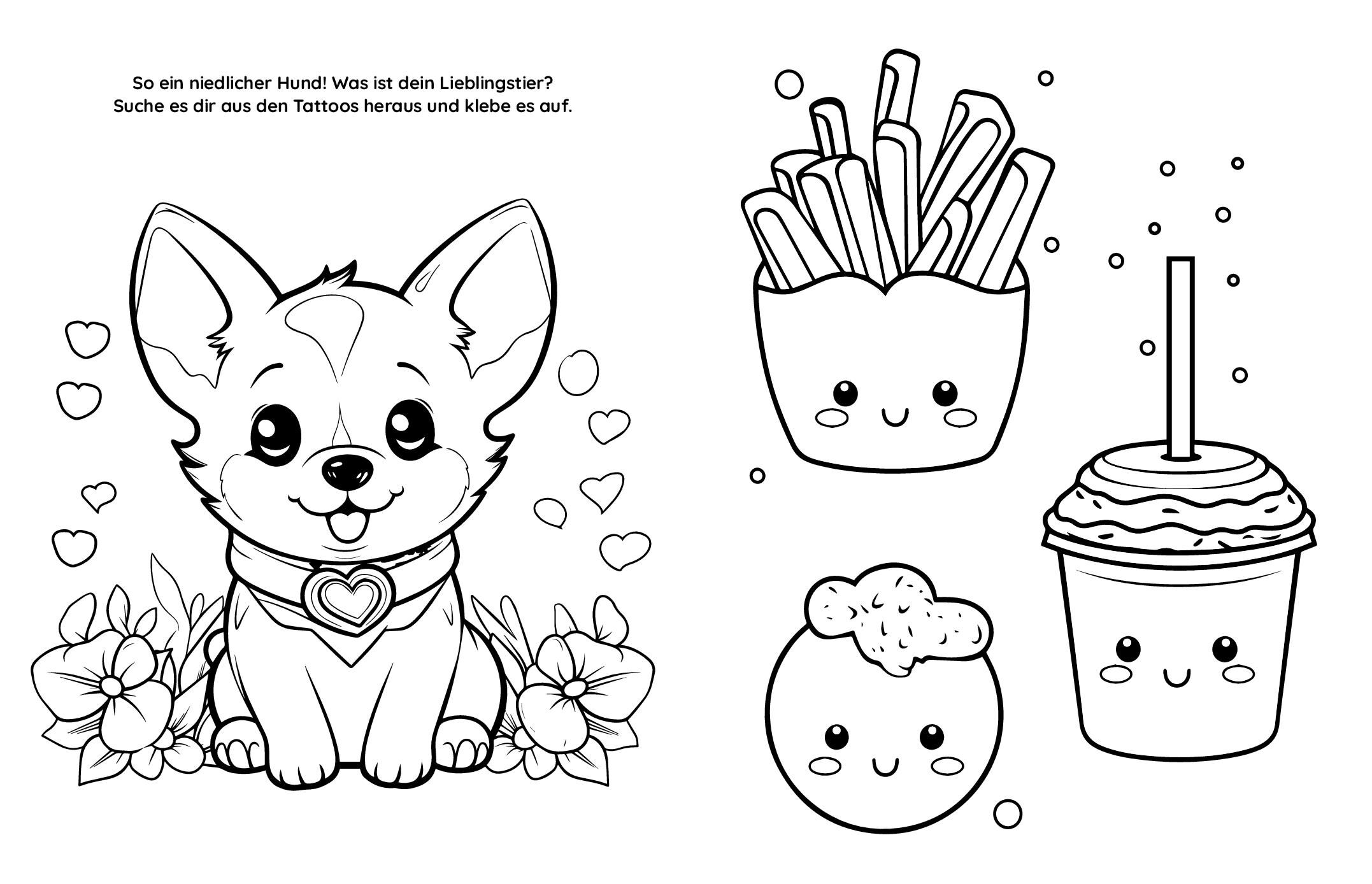 2 in 1 zum Thema Kawaii: Malbuch + Tattoos • Das große Kawaii-Malbuch mit über 60 Ausmalmotiven • Besonderes Highlight: Mit 45 Tattoos • Mit zahlreichen niedlichen Motiven von süßen Katzen über Pflanzen bis hin zu lustigen Snacks • Tattoos...