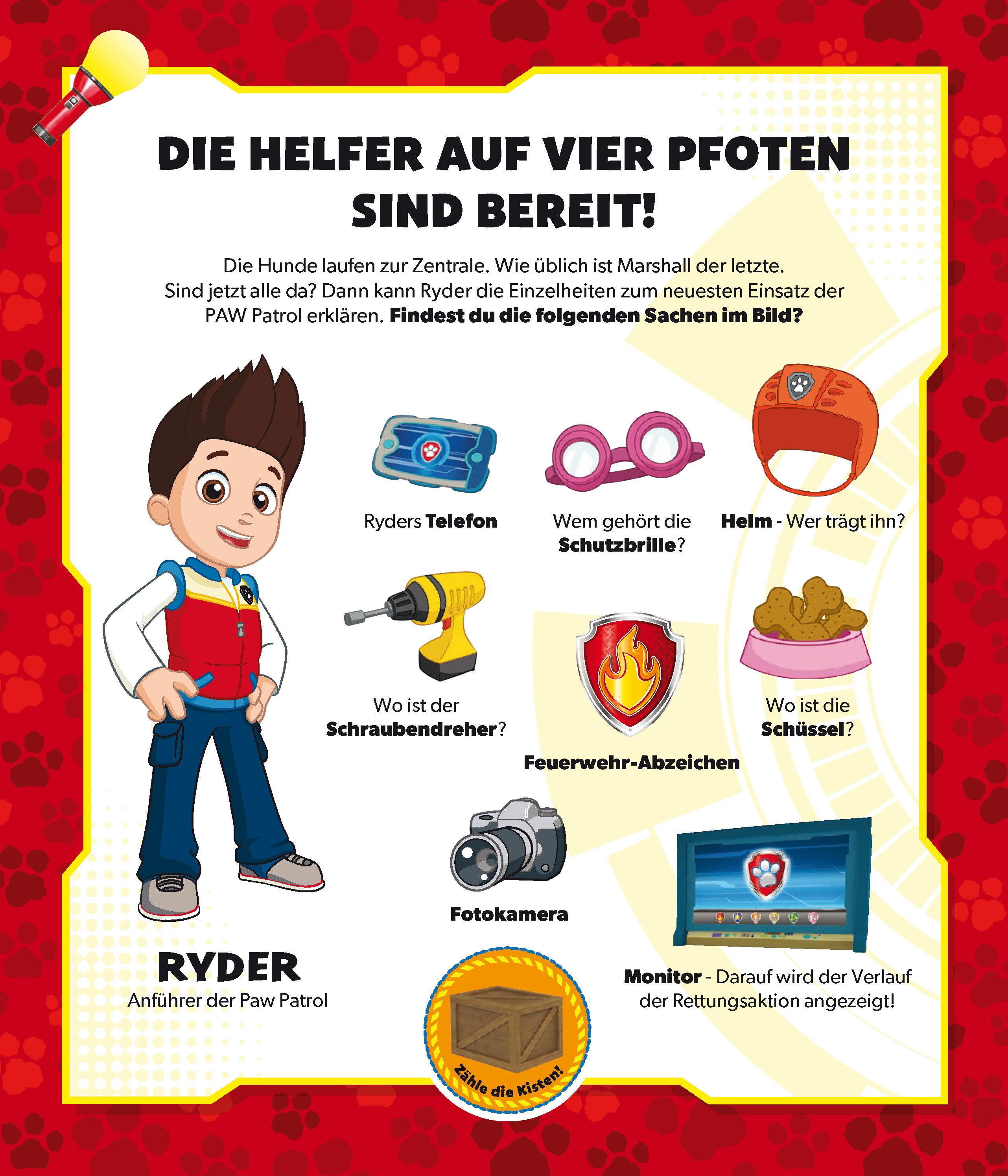 Paw Patrol Taschenlampenbuch Mit PAW Patrol bunte Folienseiten zum Leuchten bringen und ihre Einsätze miterleben! Ein Muss für alle PAW Patrol-Fans Mitmachbuch zur beliebten Fernsehserie PAW Patrol Mit der stabilen Papp-Taschenlampe die Einsätze der PAW Patrol...