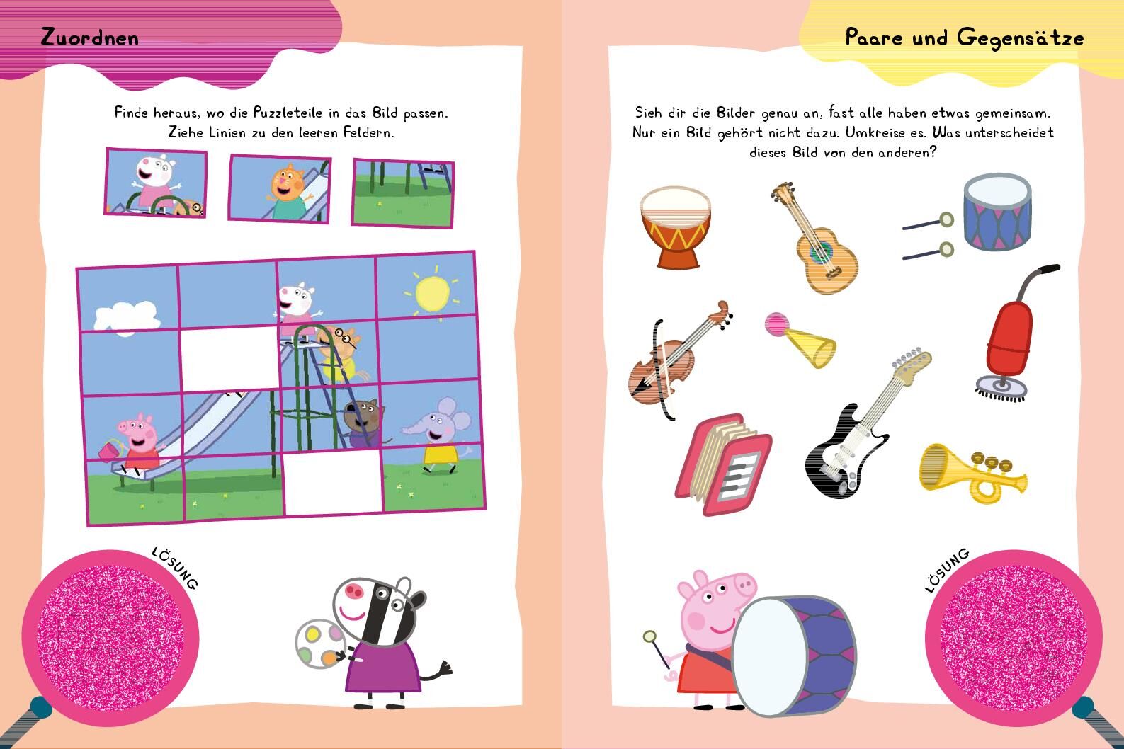 Mein Peppa Pig Lern-Spiel-Buch mit Löselupe für die Vorschule Lern-Spiel-Spaß zur Vorbereitung auf die Grundschule mit Löselupe zur Selbstkontrolle! Schult Konzentration, logisches Denken und Feinmotorik Für Kinder ab 4 Jahren Mit Peppa Pig macht Lernen Spaß!...