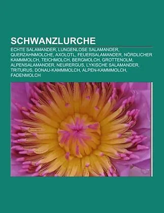 Quelle: Wikipedia. Seiten: 83. Kapitel: Echte Salamander, Lungenlose Salamander, Querzahnmolche, Axolotl, Feuersalamander, Nördlicher Kammmolch, Teichmolch, Bergmolch, Grottenolm, Alpensalamander, Neurergus, Lykische Salamander, Triturus, Donau-Kammmolch, Alpe...Quelle: Wikipedia. Seiten: 83. Kapitel: Echte Salamander, Lungenlose Salamander, Querzahnmolche, Axolotl, Feuersalamander, Nördlicher Kammmolch, Teichmolch, Bergmolch, Grottenolm, Alpensalamander, Neurergus, Lykische Salamander, Triturus, Donau-Kammmolch, Alpen-Kammmolch, Fadenmolch, Riesensalamander, Rauhäutiger Gelbbauchmolch, Chinesischer Riesensalamander, Korsischer Feuersalamander, Makedonischer Kammmolch, Sibirischer Winkelzahnmolch, Japanischer Feuerbauchmolch, Sardischer Gebirgsmolch, Blauflecken-Querzahnmolch, Italienischer Wassermolch, Asiatischer Kammmolch, Karpatenmolch, Goldstreifen-Salamander, Nördlicher Bandmolch, Anderson-Querzahnmolch, Pyrenäen-Gebirgsmolch, Tigersalamander, Spanischer Rippenmolch, Kaukasus-Salamander, Schlammteufel, Ligurischer Höhlensalamander, Marmormolch, Armmolche, Spanischer Wassermolch, Aalmolche, Grünlicher Wassermolch, Lanzas Alpensalamander, Kammmolche, Wolterstorff-Molch, Pseudoeurycea naucampatepetl, Schwertschwanzmolch, Marmor-Querzahnmolch, Winkelzahnmolche, Hynobius, Korsischer Gebirgsmolch, Pseudoeurycea saltator, Feuerbauchmolche, Geknöpfter Birma-Krokodilmolch, Vierzehensalamander, Urspelerpes brucei, Balkan-Kammmolch, Texanischer Brunnenmolch, Chinesischer Feuerbauchmolch, Brillensalamander, Lerma-Querzahnmolch, Südspanischer Feuersalamander, Silbersalamander, Alligatorsalamander, Andrias scheuchzeri, Zweizehen-Aalmolch, Eigentliche Salamander, Olme, Oedipina paucidentata, Dreizehen-Aalmolch, Ostamerikanische Wassermolche, Gefleckter Furchenmolch, Rotsalamander, Rotwangen-Waldsalamander, Chiropterotriton mosaueri, Salamandrella, Europäische Gebirgsmolche, Onychodactylus, Salamanderverwandte, Krokodilmolche, Einzehen-Aalmolch, Rippenmolche, Westamerikanische Wassermolche. Auszug: Der Feuersalamander (Salamandra salamandra) ist eine europäische Amphibienart aus der Familie der Echten Salamander. Die Spezies wurde erstmals 1758 von dem schwedischen Naturforscher Carl von Linné beschrieben. Je nach regionaler Mundart wird sie unter anderem auch als Feuermolch, Erdmolch, Erdsalamander, Regenmolch, Regenmännchen, Gelber Schneider, Bergnarr, Wegnarr, Regemolli oder Tattermandl bezeichnet. Diese volkstümlichen Namen unterscheiden allerdings teilweise nicht eindeutig zwischen Feuer- und Alpensalamandern. Typischerweise leben Feuersalamander in größeren Laub- und Mischwaldgebieten mit naturnahen Bachläufen und sind vor allem bei Regenwetter und nachts aktiv. Anders als bei vielen anderen mitteleuropäischen Lurchen werden keine Eier, sondern weiter entwickelte Larven ins Wasser abgesetzt. Der Feuersalamander ist, wie die Verbreitungskarte zeigt, über weite Teile West-, Mittel-, Süd- und Südosteuropas verbreitet. Er hat das größte Verbreitungsgebiet unter den europäischen Landsalamandern. Die Nordgrenze verläuft durch Nord- und Mitteldeutschland, dann südostwärts entlang der Karpaten bis in die Ukraine und Rumänien und südwärts über Bulgarien nach Griechenland, wobei die Verbreitung maßgeblich durch die Gebirge Südosteuropas bestimmt wird. Die südwestliche Arealgrenze wird von der Iberischen Halbinsel gebildet. Nicht besiedelt sind Skandinavien, Großbritannien, Irland und Nordosteuropa. In Mitteleuropa unterscheidet man die Tiere je nach ihrem gelben Zeichnungsmuster auf dem Rücken als gebänderte Unterart (Salamandra salamandra terrestris) mit dem Hauptverbreitungsgebiet West- und Mitteleuropa sowie die Nominatform mit geflecktem Muster (Salamandra salamandra salamandra) mit dem Verbreitungsgebie...