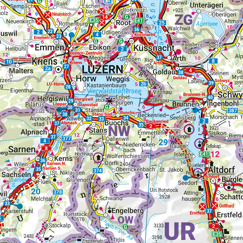 Mit der Straßenkarte Schweiz im Maßstab 1:400.000 finden sich Urlauber die mit Auto, Motorrad oder Wohnwagen unterwegs sind bestens zurecht. Das umfassende Straßennetz ist präzise dargestellt, Touristenstraßen sind farblich markiert und viele touristische Attr...