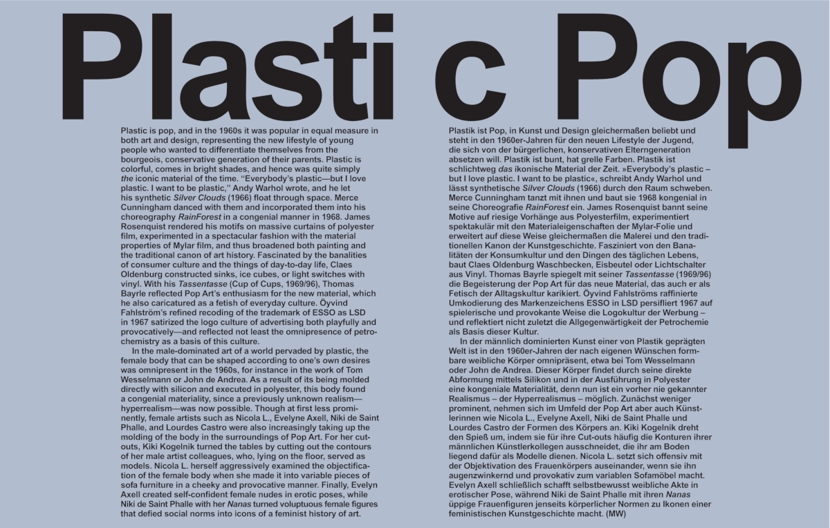 Plastik im soziokulturellen Kontext Kunst- als Materialgeschichte Zeitgenossenschaft wird historisch Plastik ist überall. Es durchdringt die Gegenwart, ist billig, weltweit verfügbar und im Alltag omnipräsent. Als Symptom und Symbol der Massenkultur übten Kuns...
