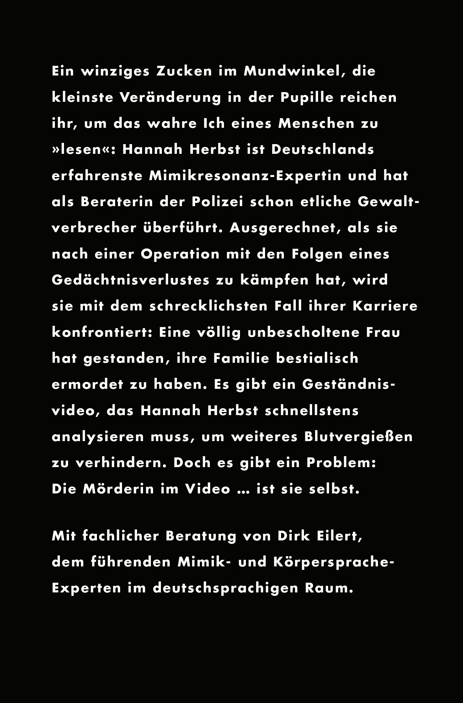 Fürchte dich nicht! Außer vor dir selbst Sebastian Fitzeks herausragender Psychothriller um eine Mimikresonanz-Expertin, die sich in größter Not selbst nicht mehr trauen kann Ein winziges Zucken im Mundwinkel, die kleinste Veränderung in der Pupille reichen i...