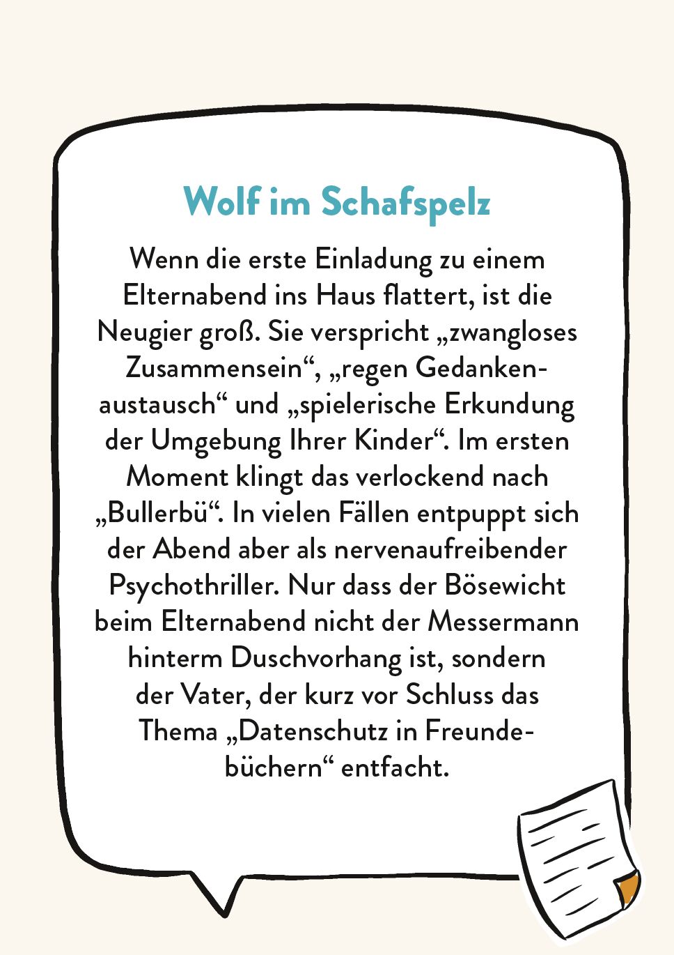 Keine Angst vorm Elternabend! Auch wenn es wie Horror klingt: Der Elternabend muss kein Albtraum sein. Nach seinem gleichnamigen Bestseller verarbeitet Sebastian Fitzek , selbst Vater von vier Kindern, in diesem humorvollen Survival Guide alles, was man wisse...