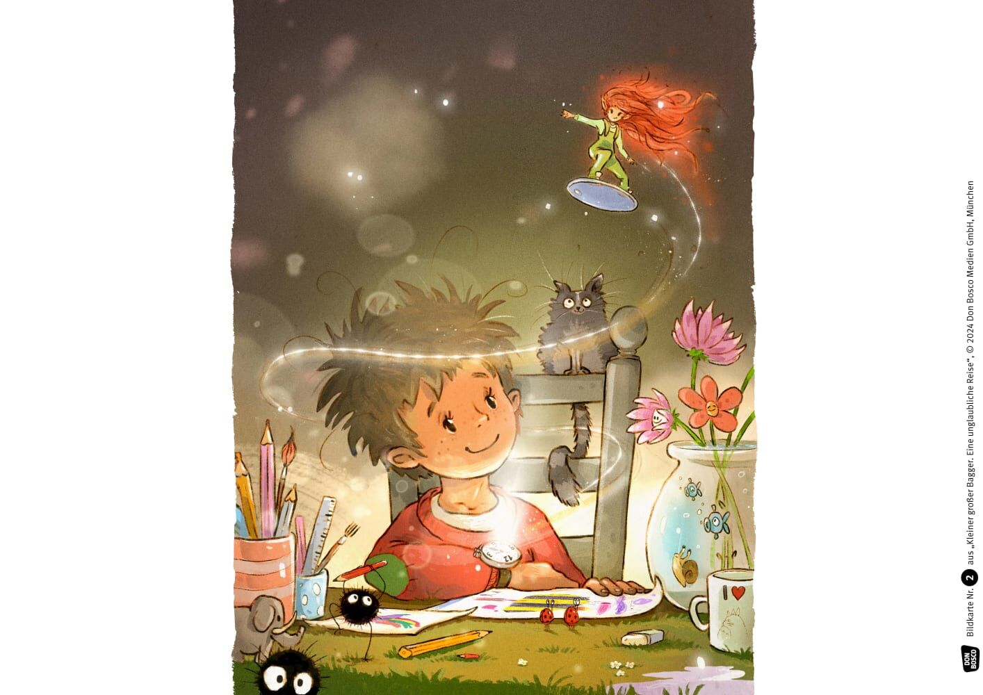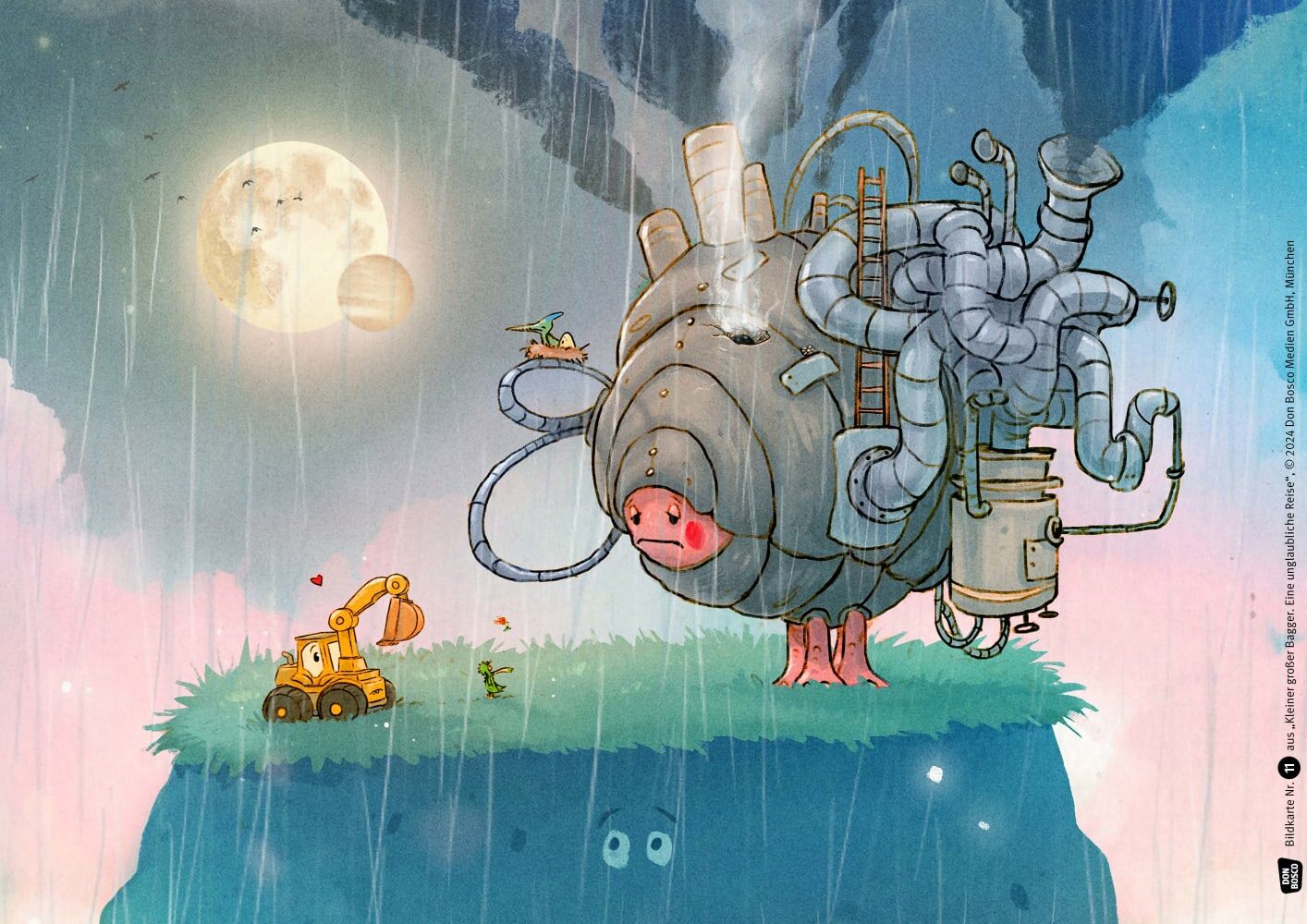 Kamishibai-Bildkarten zur fantasievollen Bagger-Geschichte für Kita und Grundschule. Echte Freundschaft und eine ungewöhnliche Weltreise im Erzähltheater. Freunde können alles schaffen: Eine Geschichte über die Kraft der Fantasie Der kleine Robert spielt im Ni...