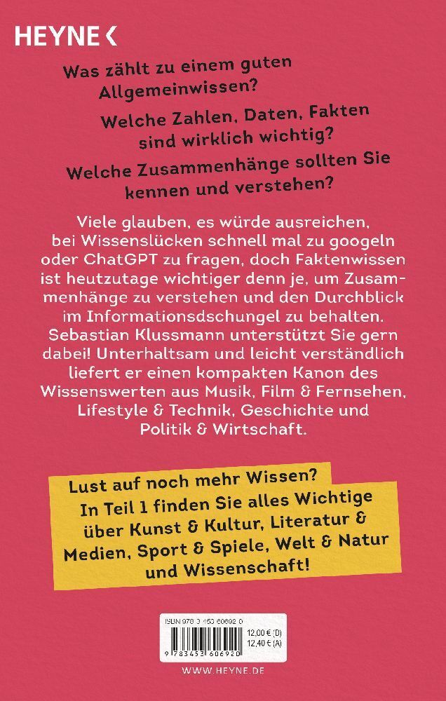 Die Reise in die Welt des Wissens geht weiter! Sebastian Klussmann nimmt Sie mit in die faszinierende Welt des Wissens. In diesem kompakten, unterhaltsamen und leicht verständlichen Überblick erfahren Sie das Wichtigste aus den Bereichen Geschichte, Politik &a...